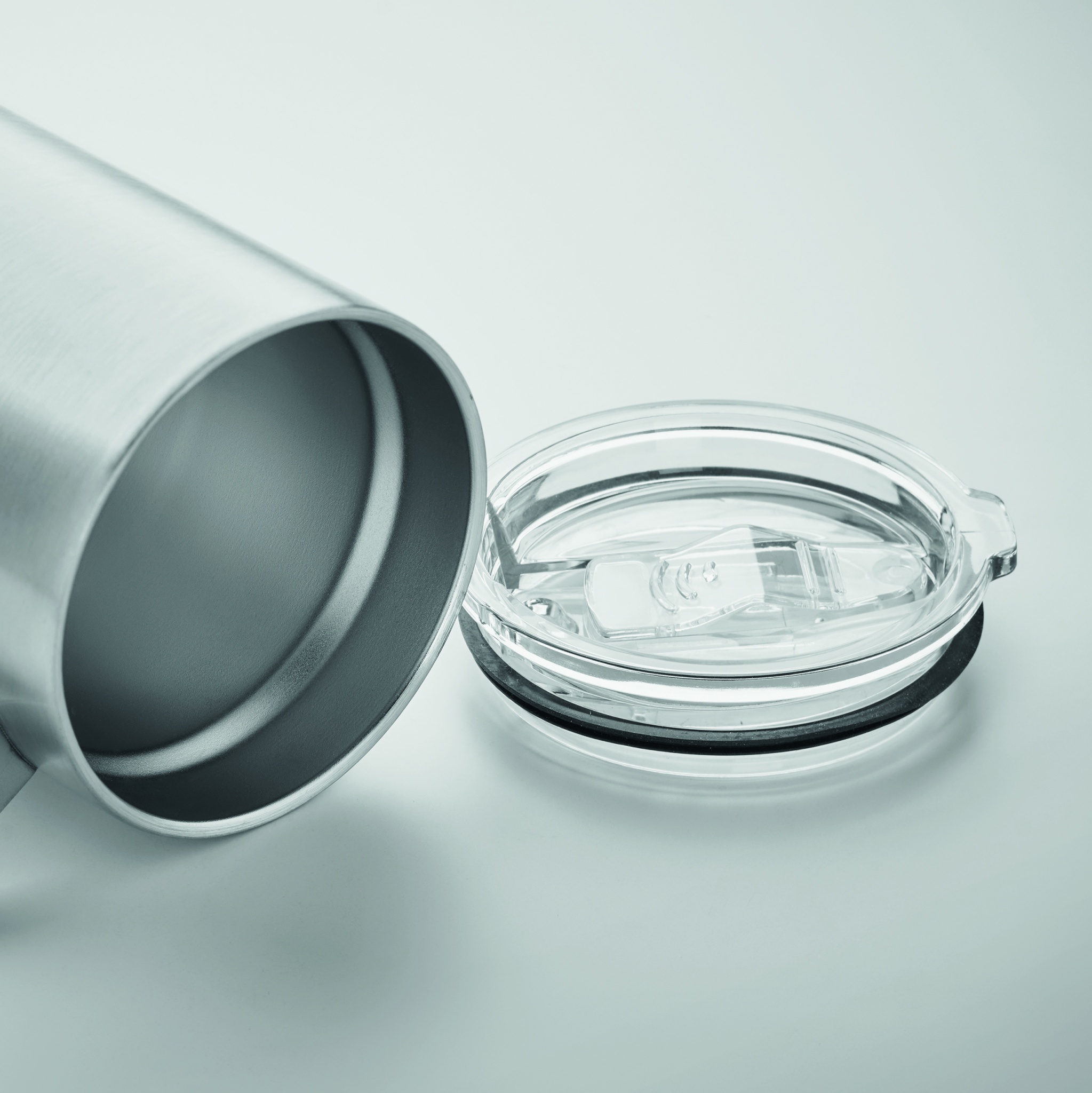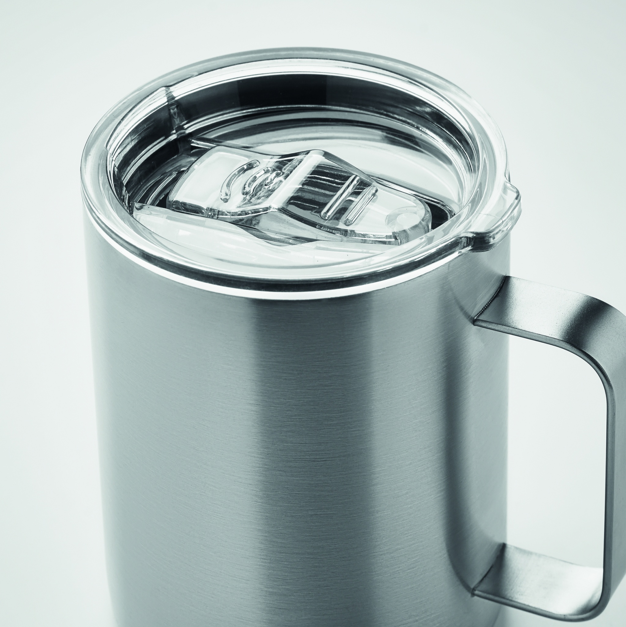 Topeltseinaga taaskasutatud roostevabast terasest (90% taaskasutatud roostevabast terasest ja 10% roostevabast terasest) lükandava sõõmuava kaanega kruus. Mahutavus: 300 ml.