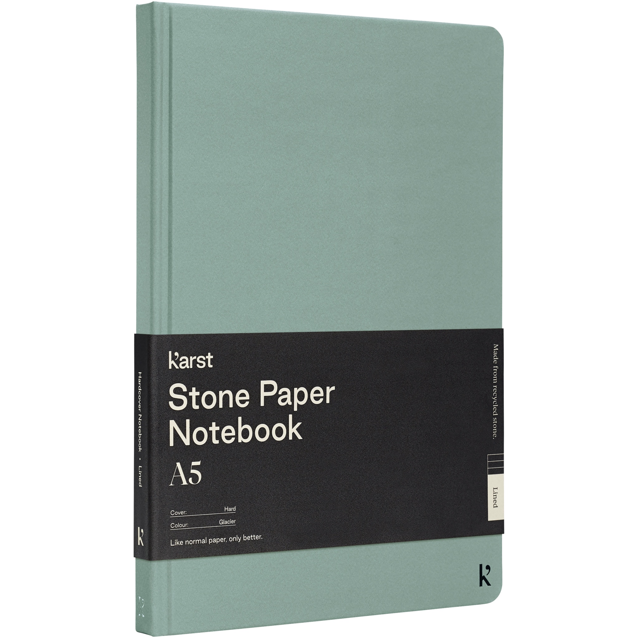 Karst® A5 kõvakaaneline sülearvuti on enimmüüdud ja meelitab publikut. Lehtede sile tekstuur ja tasapinnaline köide pakuvad märkmete ja ideede jaoks piisavalt mugavust ja kirjutamisruumi. Sisaldab elastset riba, mis hoiab sülearvuti suletuna, 144 veekindlat, rebenemiskindlat vooderdatud lehte, laiendatavat tagatasku hoidmiseks ning eralduspaela, millel on kuumtihendatud ots ja ümarad nurgad.