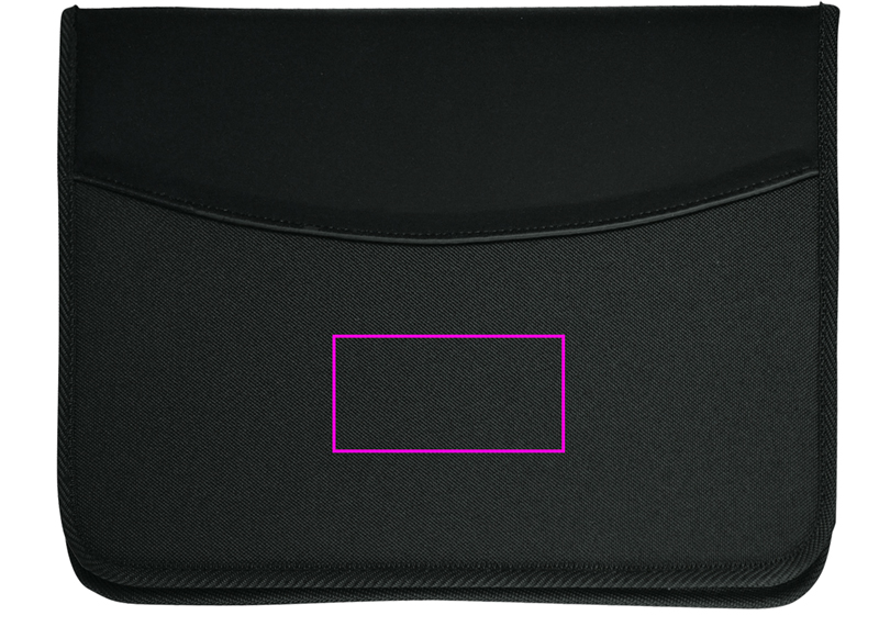 Portfolio on valmistatud vastupidavast 600D polüestrist; erinevate lahtrite, 270° tõmbluku ja neutraalse kirjutusplokiga (40 lk.) Trükime teie logo pehmele nahast serfale.