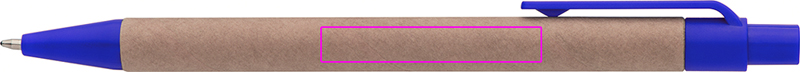 Taaskasutatud paberist ja värvilisest plastikust pastapliiats, sinine kiri. Teie logo on trükitud klipist paremale.