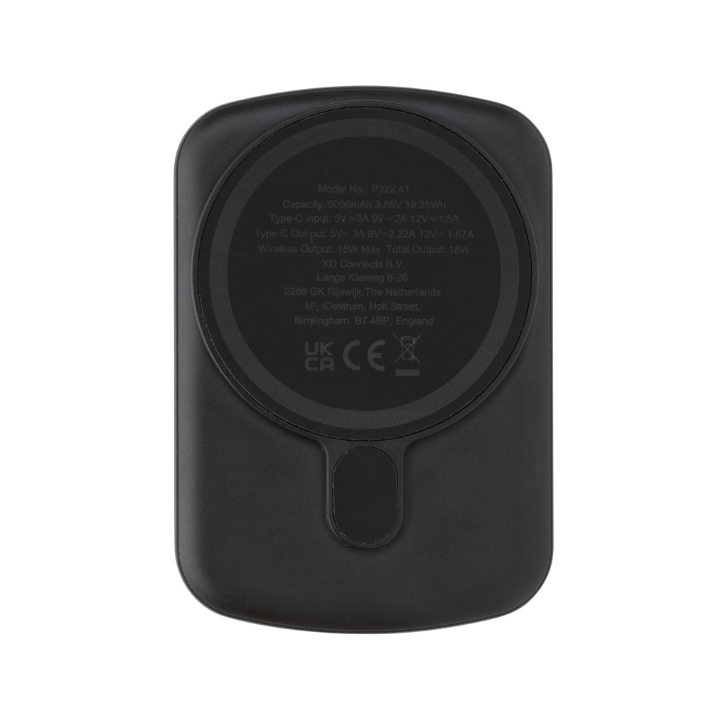5000 mAh taskusuurune akupank 15 W magnetilise juhtmevaba laadijaga, mille korpus on valmistatud RCS-sertifikaadiga taaskasutatud ABS-plastist. RCS (Recycled Claim Standard) on standard toote ringlussevõetud sisu kontrollimiseks kogu tarneahelas. Taaskasutatud kogusisaldus: 21% eseme kogukaalust. Toitepank sisaldab kauakestvat A-klassi 5000 mAh liitiumpolümeerakut. Integreeritud digitaalne LED-ekraan näitab järelejäänud energiataset, nii et teate alati, millal laadida. Type-C sisend 5V/2,4A; Tüüp C väljund: 5V/2A.4A Toode ja tarvikud PVC-vaba. Kaasa arvatud RCS-sertifikaadiga taaskasutatud TPE laadimiskaabel. Pakitud FSC® segupakendisse. Type-C sisend: 5V/3A 9V/2A 12V/1,5A; Väljund: USB-C väljund: 5V/2.4A,9V/2.22A,12V/1.67A; Juhtmeta väljund: 15W