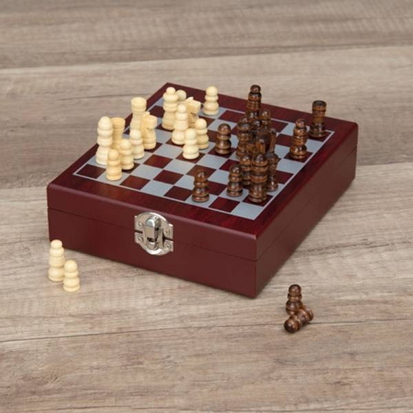 Kontrollige! Nautige pudelit veini, mõeldes järgmisele sammule! See komplekt sisaldab kõike, mida vajate: ettekandja nuga (korgitser, pudeliavaja ja väikese teraga), kukkumisrõngas, metallist pudelikork ja termomeeter, mis kõik on paigutatud dekoratiivsesse puidust kinkekarpi. Malenupud on seest kenasti pakitud ja kate toimib malelauana. Asetame teie logo puitkarbi esiküljele eelistatavalt hõbedase värviga. Iga komplekt on pakitud ühte pappkarpi.
