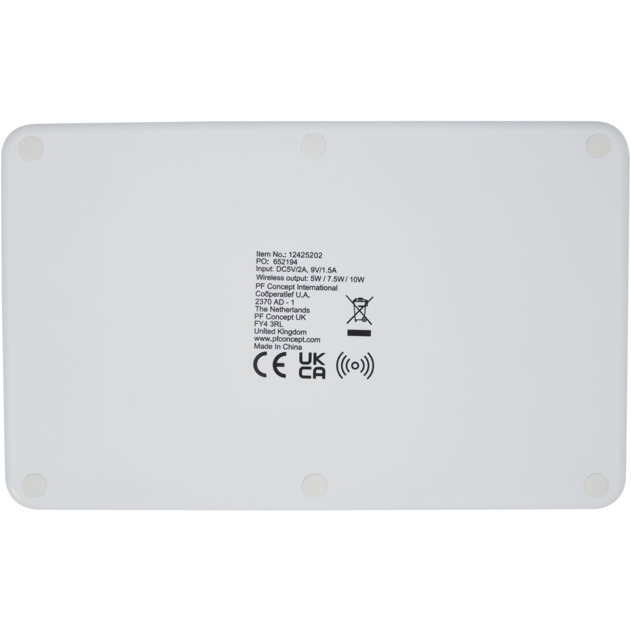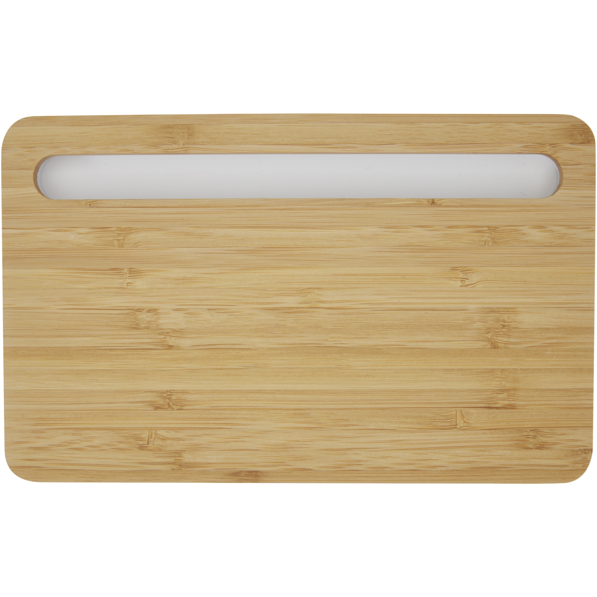 Telefonihoidikuga integreeritud 10 W bambusest juhtmevaba laadija, mis ühildub kõigi Qi seadmetega (iPhone 8 või uuem ja Android seadmed, mis toetavad juhtmevaba laadimist). Tarnitakse kinkekarbis koos kasutusjuhendiga (mõlemad säästlikest materjalidest).