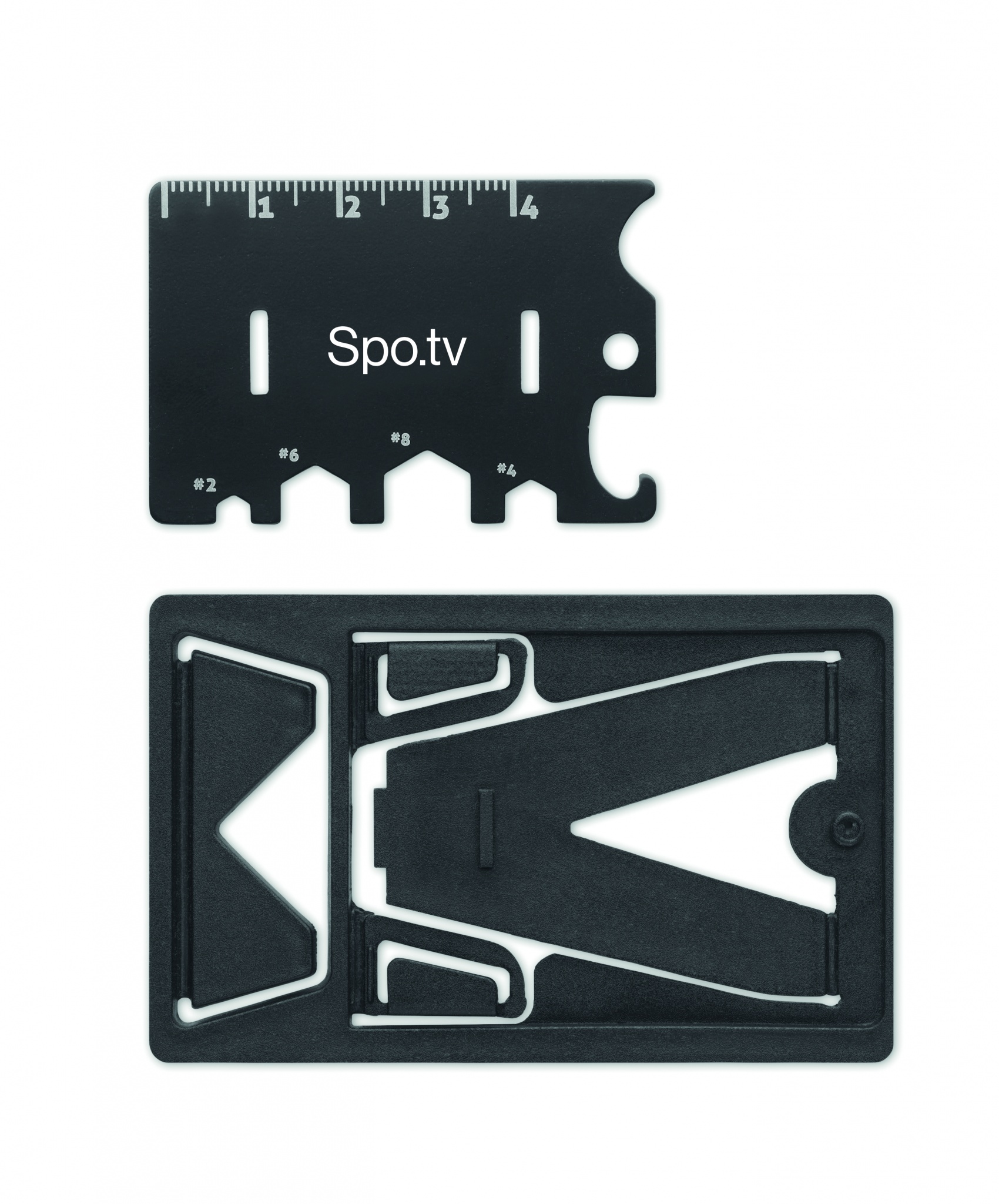 Roostevabast terasest ja PP-st multitööriist telefonialuse funktsionaalsusega 6 funktsiooniga PU kotis. See sisaldab kruvikeerajad, joonlaud, kuuskantvõti ja pudeliavaja.