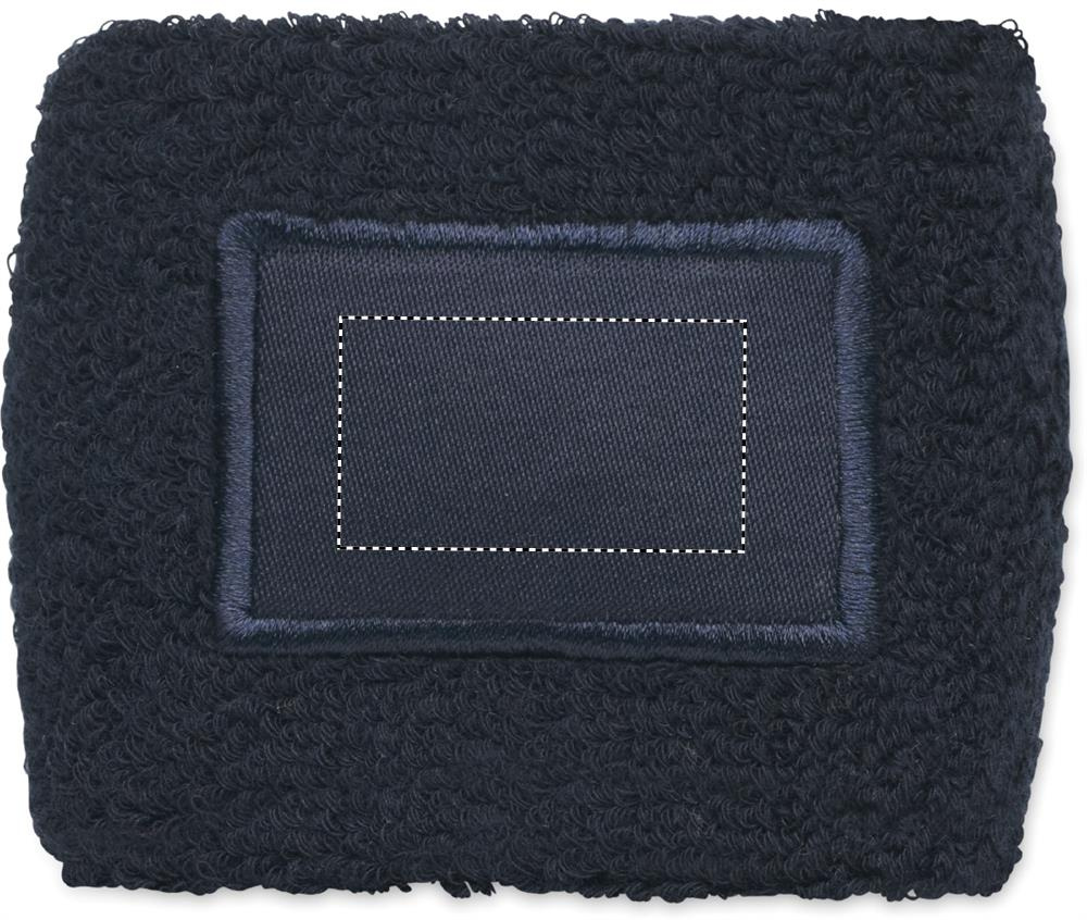 Polüpuuvillast (79% puuvill/13% elastaan/8% polüester) käepael puuvillase embleemiga trüki jaoks.