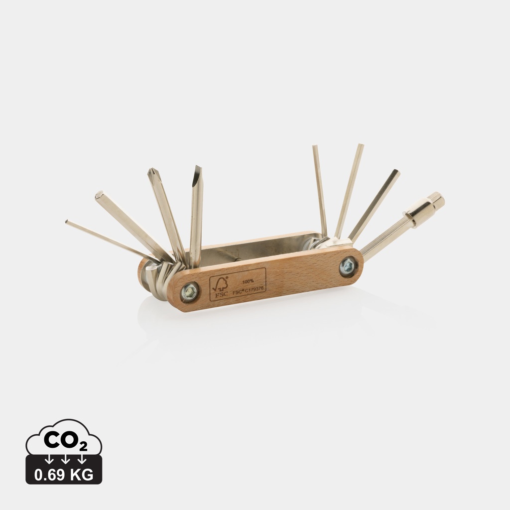 HEX-tööriist on valmistatud FSC 100% pöögipuidust ning kõrge kõvadusega ja korrosioonikindlast süsinikterasest (#45). Rockwelli kõvadus 40-45. Tootel on 9 funktsiooni: kuuskantvõti 5,5 mm; Kuuskantvõti 2mm; Kuuskantvõti 2,5 mm; Kuuskantvõti 3mm; Kuuskantvõti 4mm; Kuuskantvõti 5 mm; Kuuskantvõti 6mm; Philipsi kruvikeeraja; Lame kruvikeeraja. Pakitud FSC mix kraft karpi.