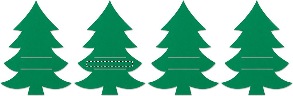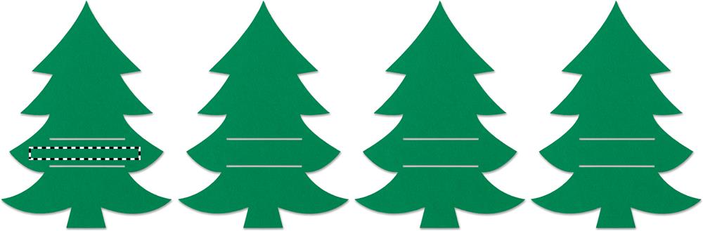 4-st jõulupuukujulises RPET-vildist söögiriistahoidjast koosnev komplekt, pakitud jõukarbis.