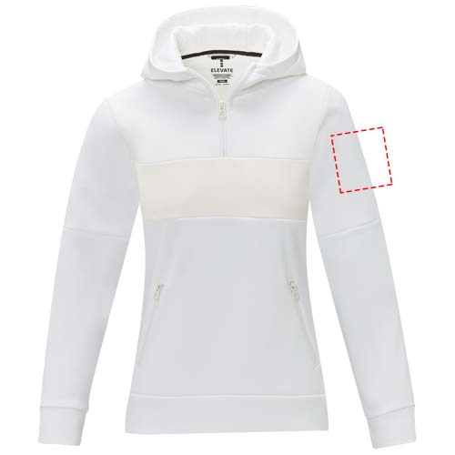 Naiste pooleldi lukuga anorak kapuutsiga sviiter Sayan – ainulaadne jõudluse ja stiili kombinatsioon. Anoraki disain ühendab moe ja funktsiooni sujuvalt ning sellel on veerand tõmblukk, mis muudab kihistamise mitmekülgseks. Valmistatud 350 g/m² polüestri ja Sorona® kudumi segust. Sorona® kiud suurendab jope keskkonnasõbralikkust, sisaldades säästvat elementi jõudlust tegemata. Esipaneeli kontrastkangas, mis on valmistatud 280T ripstop nailonist, lisab disainile oma vastupidavuse ja tekstuuri ning on ideaalne koht teie kaubamärgi esitlemiseks. Olenemata sellest, kas asute väljas seiklema või lihtsalt navigeerite oma igapäevases rutiinis, ühendab Sayani kapuutsiga kampsun moe ja funktsiooni vaevata. See kampsun on kujundatud liibuva kujuga, et anda naiselik välimus.