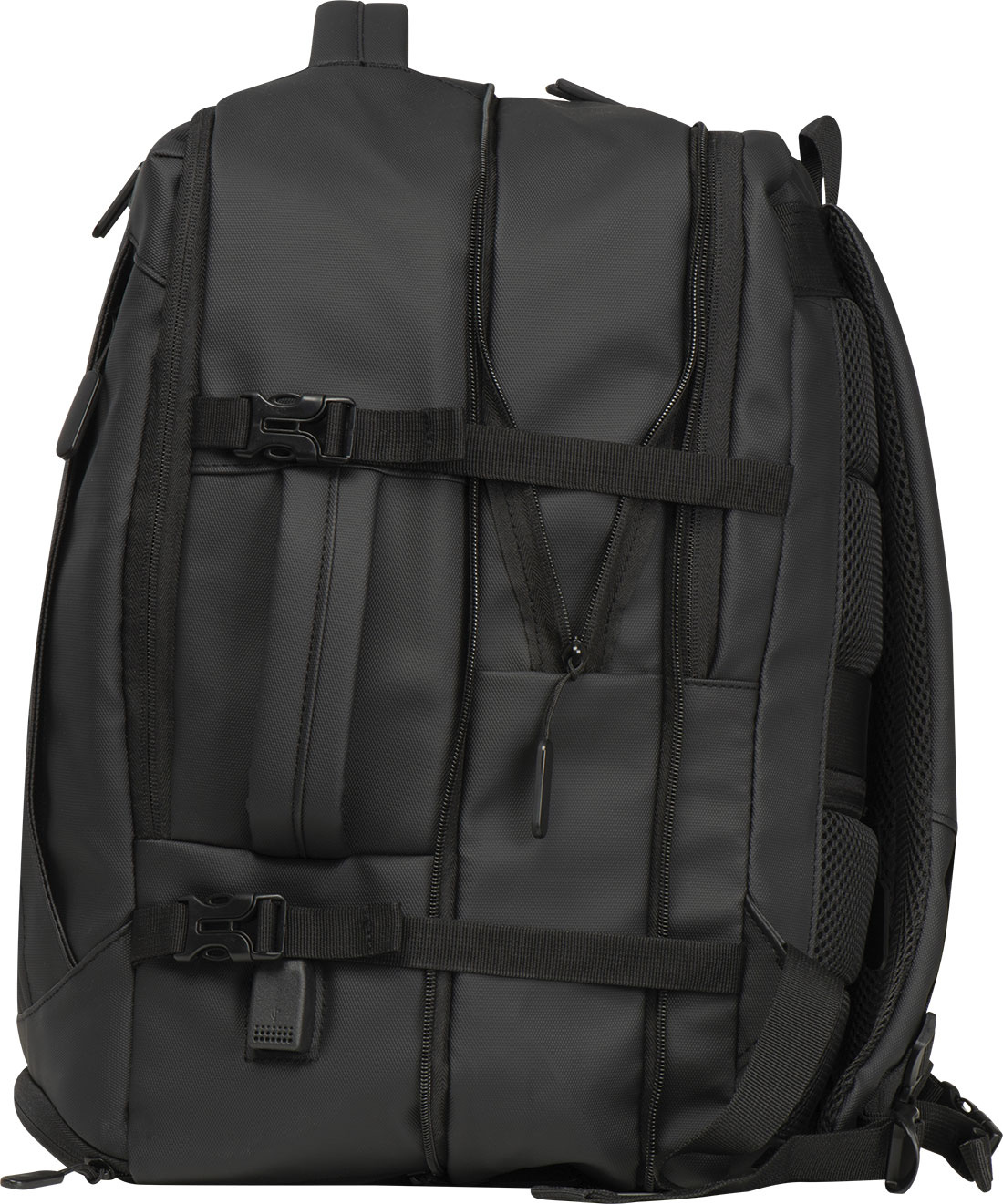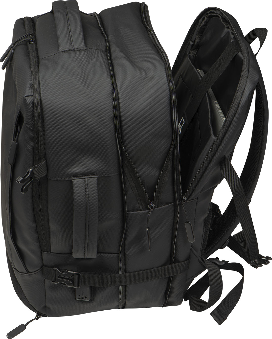 Kvaliteetne 300D polüestrist valmistatud seljakott. Sellel veekindlal seljakotil on mitu lahtrit: suletava ja täiendava taskuga sülearvuti sahtel, taga turvatasku, võrgusilma ja laiendatava tõmblukuga küljetasku, allosas mustuselahter, esikülje all polsterdatud tasku, esiküljel lukuga tasku, erinevad sisemised taskud. Lisaks sisaldab see USB-porti koos kaabliga, kahte kandesanga, käru rihma, polsterdatud õlarihmasid, polsterdatud seljaosa ja tõmblukku seljakoti laiendamiseks. Ideaalne kaaslane mitte ainult ärireisidel.