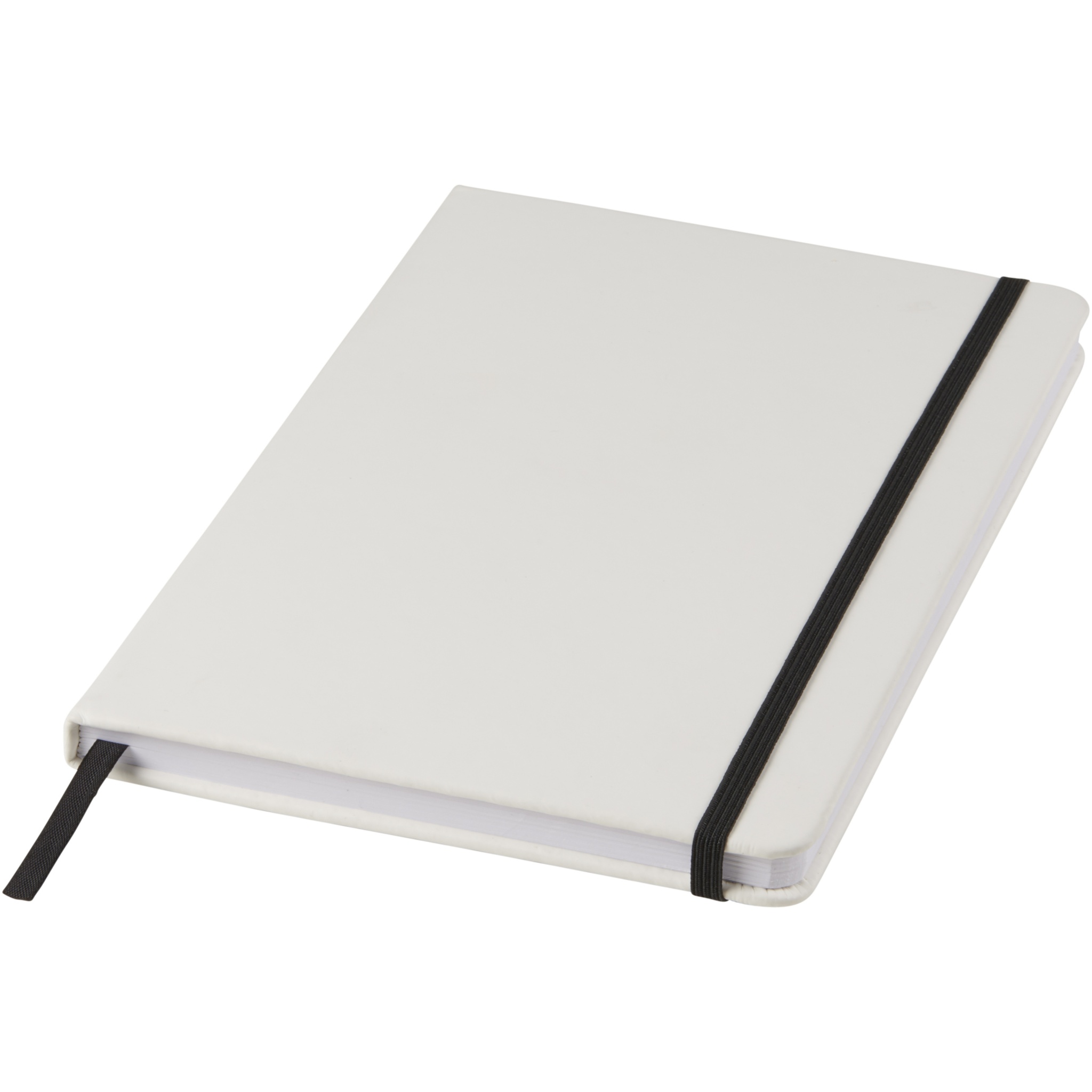 Valge A5 märkmik värvilise elastse kinnise ja paelaga. Sisaldab 80 lehte (60g/m2) joonega paberit. Kaanele võimalik digitrükk.