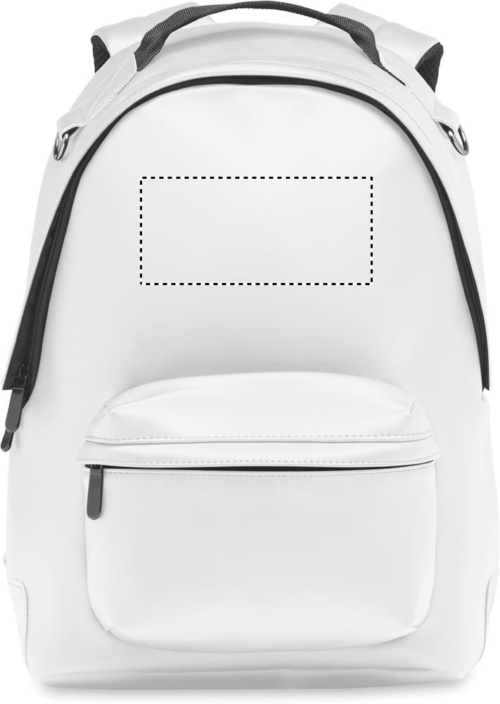 15-tolline pehmest PU-st sülearvuti seljakott polsterdatud selja ja tugevdatud põhjaga. Ees lukuga tasku. Vooder on 210D RPET.