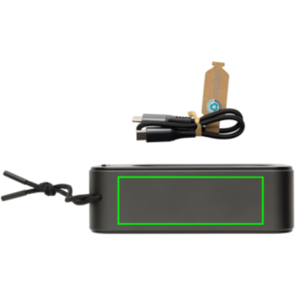 Swiss Peak RCS taaskasutatud alumiiniumist 10W kõlar pakub võimsat ja kvaliteetset heli sügava ja resonantse bassiga tänu integreeritud subwooferile ja kahele 5W kõlarile. 1200mAh polümeer-liitiumioonakuga pakub kõlar kuni 5 tundi mänguaega 50% helitugevuse juures ja laeb täielikult täis kaasasoleva USB-C - USB-C kaabli kaudu vaid 2,5 tunniga. Lisafunktsioonide hulka kuuluvad USB-C port ja AUX-port. Kõlar on valmistatud RCS-sertifitseeritud taaskasutatud alumiiniumist. RCS (Recycled Claim Standard) on standard toote taaskasutatud sisu kontrollimiseks kogu tarneahelas. Taaskasutatud sisu kokku: 40% toote kogukaalust. See kõlar on PVC-vaba ja pakendatud FSC-sertifitseeritud kinkekarbis.