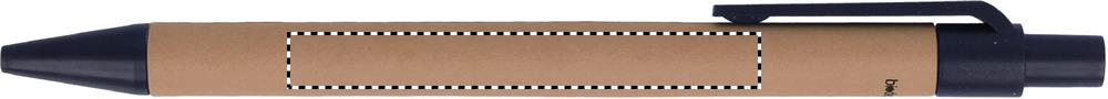 Taaskasutatud paberist märkmik pastakaga. Kahejuhtmeline. 140 tavalist taaskasutatud paberilehte (70 lehte). Nupuga pastapliiats taaskasutatud karbis ja biolagunevas plastis. Sinine tint. Must elastne pliiatsihoidja.
