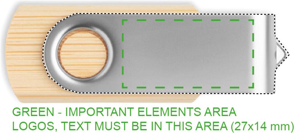 16 GB USB 2.0 välkmäluseade bambusest korpuse ja kaitsva metallkaanega. Pöörake katet ja ühendage selle kasutamise alustamiseks USB-porti. Bambus on looduslik toode, ühe eseme värvis ja suuruses võib esineda väikesi erinevusi, mis võivad mõjutada lõppviimistlust.