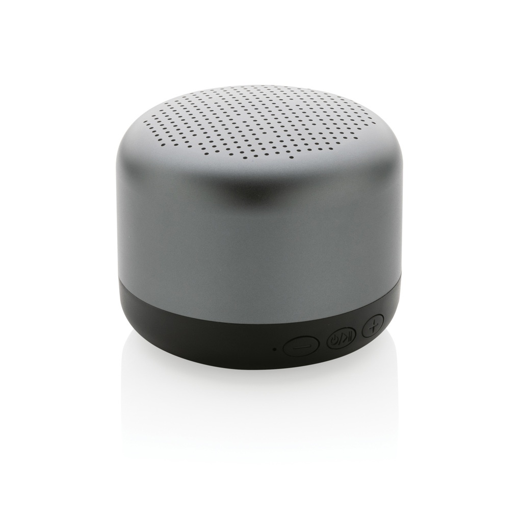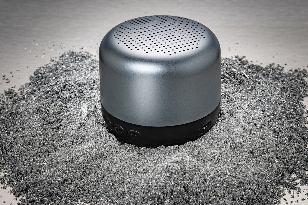 5 W juhtmevaba kõlar, mis on valmistatud RCS (Recycled Claim Standard) sertifitseeritud taaskasutatud alumiiniumist ja ABS-ist. Taaskasutatud kogusisaldus: 35% eseme kogukaalust. RCS-sertifikaat tagab taaskasutatud materjalide täielikult sertifitseeritud tarneahela. Alumiinium ei kaota ringlussevõtu käigus oma omadusi ja seda saab ringlusse võtta lõputult. Sisaldab taaskasutatud C-tüüpi laadimiskaablit, mis on valmistatud RCS-sertifikaadiga taaskasutatud alumiiniumist, TPE-st ja PET-st. Pakitud FSC® segupakendisse. 600 mah aku võimaldab mängida kuni 4 tundi ja seda saab täielikult laadida 2 tunniga. BT 5.0-ga sujuvaks ühenduseks kuni 10 meetrit.