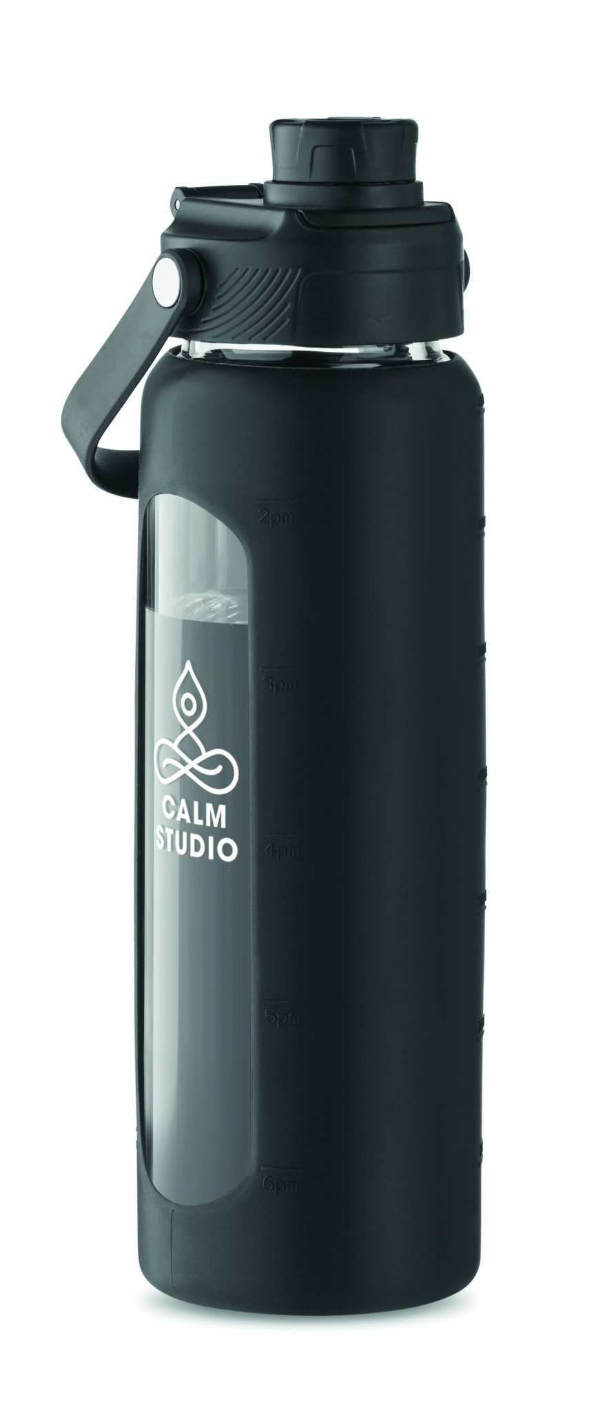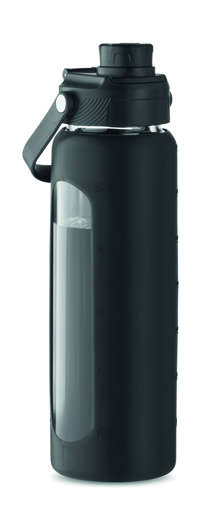 Kõrgborosilikaatklaasist pudel silikoonist läbipaistva ümbrisega PP-kaanega ja kandesangaga. Lekkevaba. Mahutavus: 750 ml.