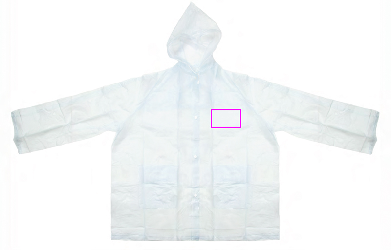 PVC vihmajope (üks suurus XL) läbipaistev matt kapuutsiga, kahe esitasku ja nööpidega. Trükime teie logo rinnale (südame poolele).