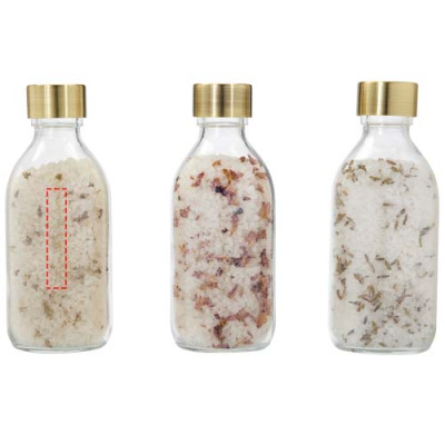 Kinkekomplekt "Just Relax" 3x 200 ml Surnumere vannisoolaga läbipaistvas messingvärvi teraskorgiga klaaspudelis. Igal pudelil on erinev lõhn: roosid, lavendel ja kummel. Kodus pole vanni? Vannisool saab kasutada ka väsinud jalgade värskendamiseks ja lõõgastumiseks. Ideaalne kingitus igaks elujuhtumiks Made in Holland.