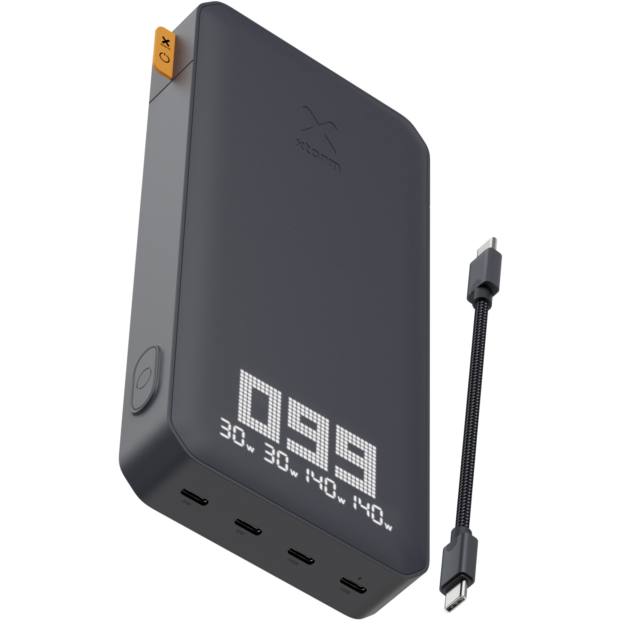 Suure 27 000 mAh mahutavusega XB403 Titan Ultra akupank saab hõlpsasti laadida USB-C sülearvuti, MacBooki, tahvelarvuti, nutitelefoni või e-lugeri. 200 W koguvõimsuse ja 140 W USB-C ühe väljundiga toitepank on XB4 seeria võimsaim toitepank. Tänu integreeritud 240 W USB-C PD-kaablile olete kohe valmis oma seadmeid laadima igal ajal ja igal pool. Lennukikindel. Saab täielikult laadida vähem kui 1,5 tunniga. Väljund: 2 x USB-C 3.1 140 W toiteallikas, 2 x USB-C 30 W toiteallikas. Sisend: USB-C 140 W toiteallikas. Tarnitakse koos sisseehitatud USB-C 240 W toitekaabli ja kasutusjuhendiga.