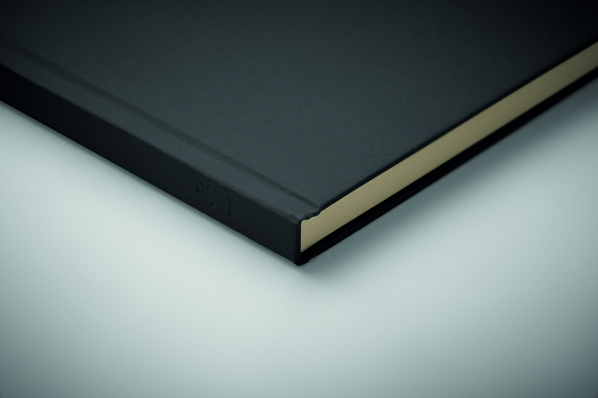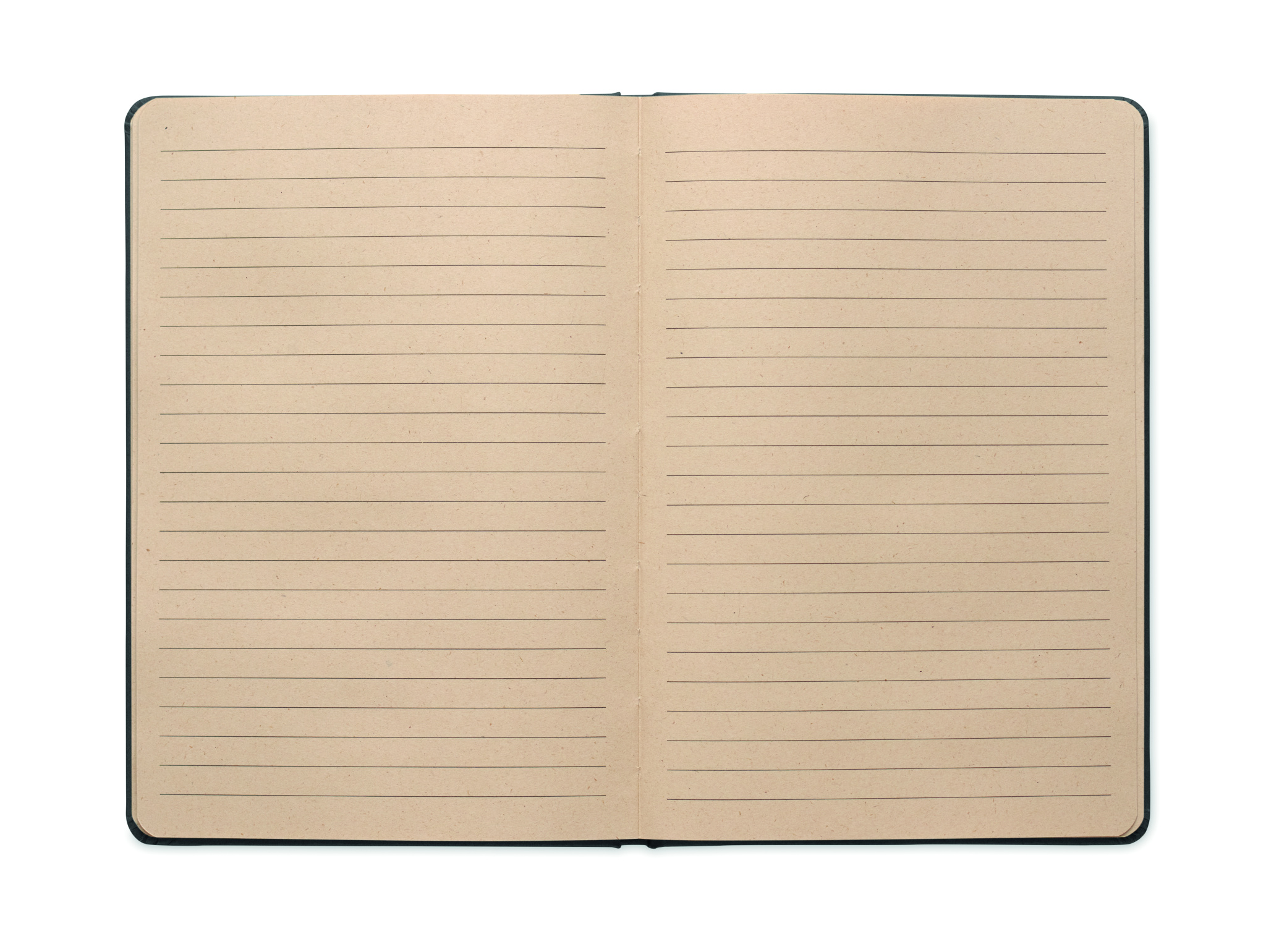 A5-kokoinen muistikirja kovakannella ja 160 viivoidulla paperisivulla (80 arkkia) PLA-sokeriruokokuitua (65 % sokeriruokokuitua / 35 % paperia). Nidottu.