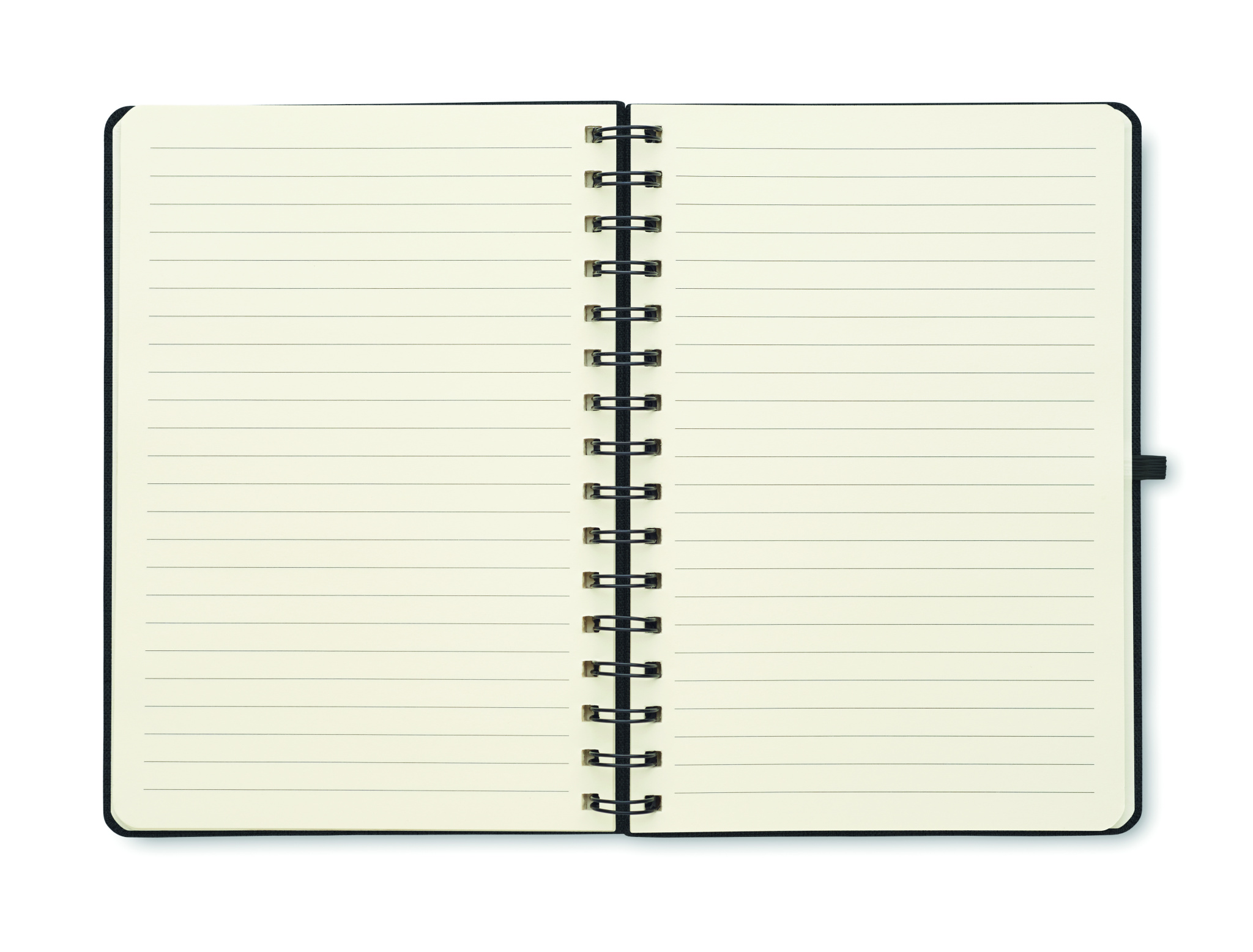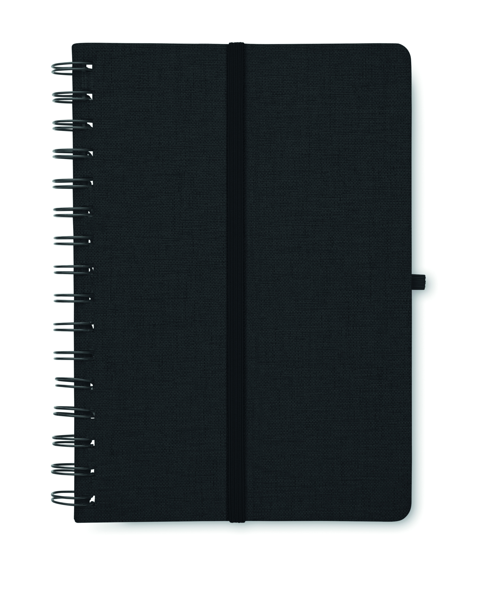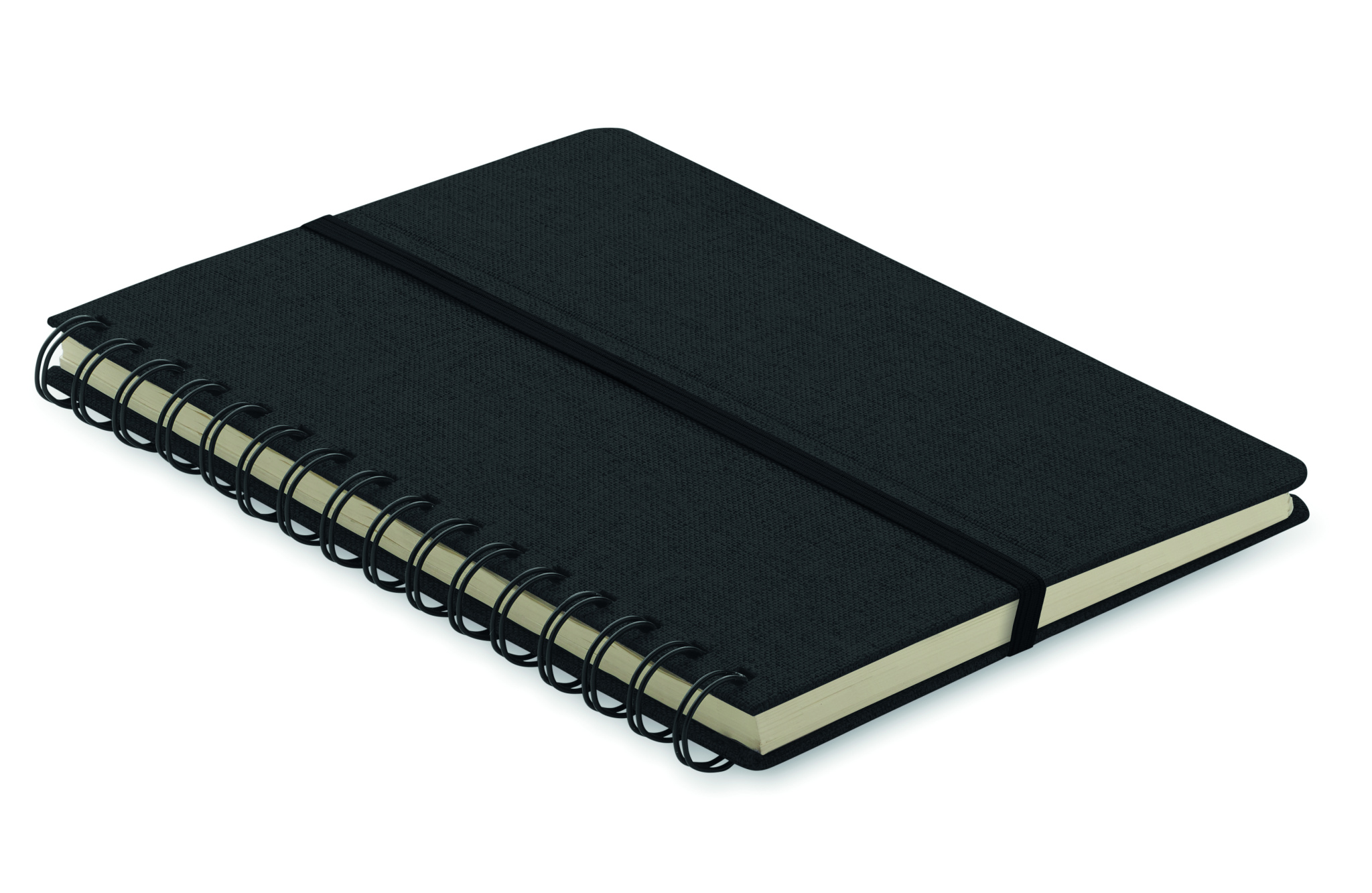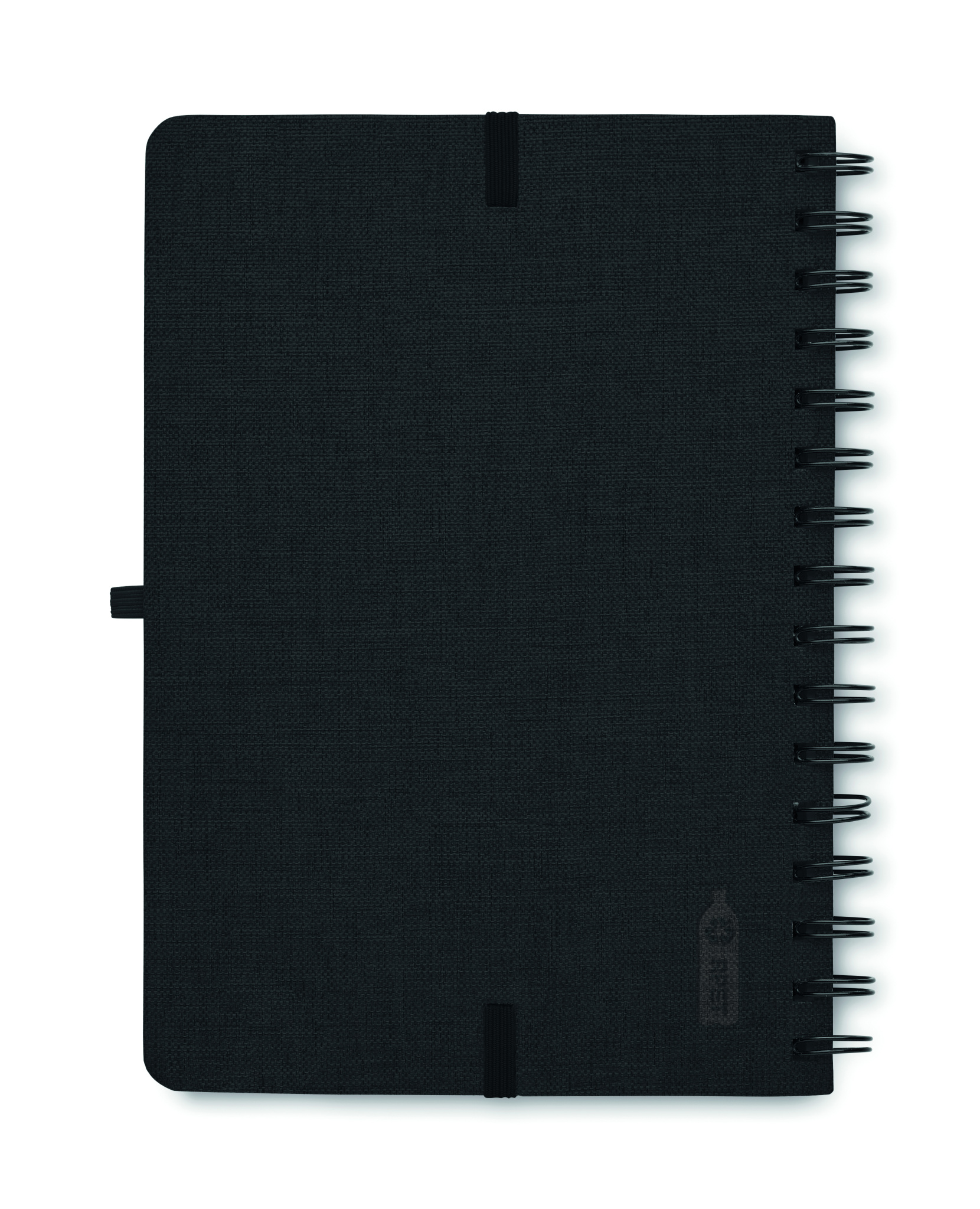 A5-kannettava 600D RPET kovakantinen älypuhelintelinetoiminnolla. Kaksoisjohto. 160 rivillistä sivua (80 arkkia). 70 gsm kierrätyspaperia. Joustava sulkuhihna.