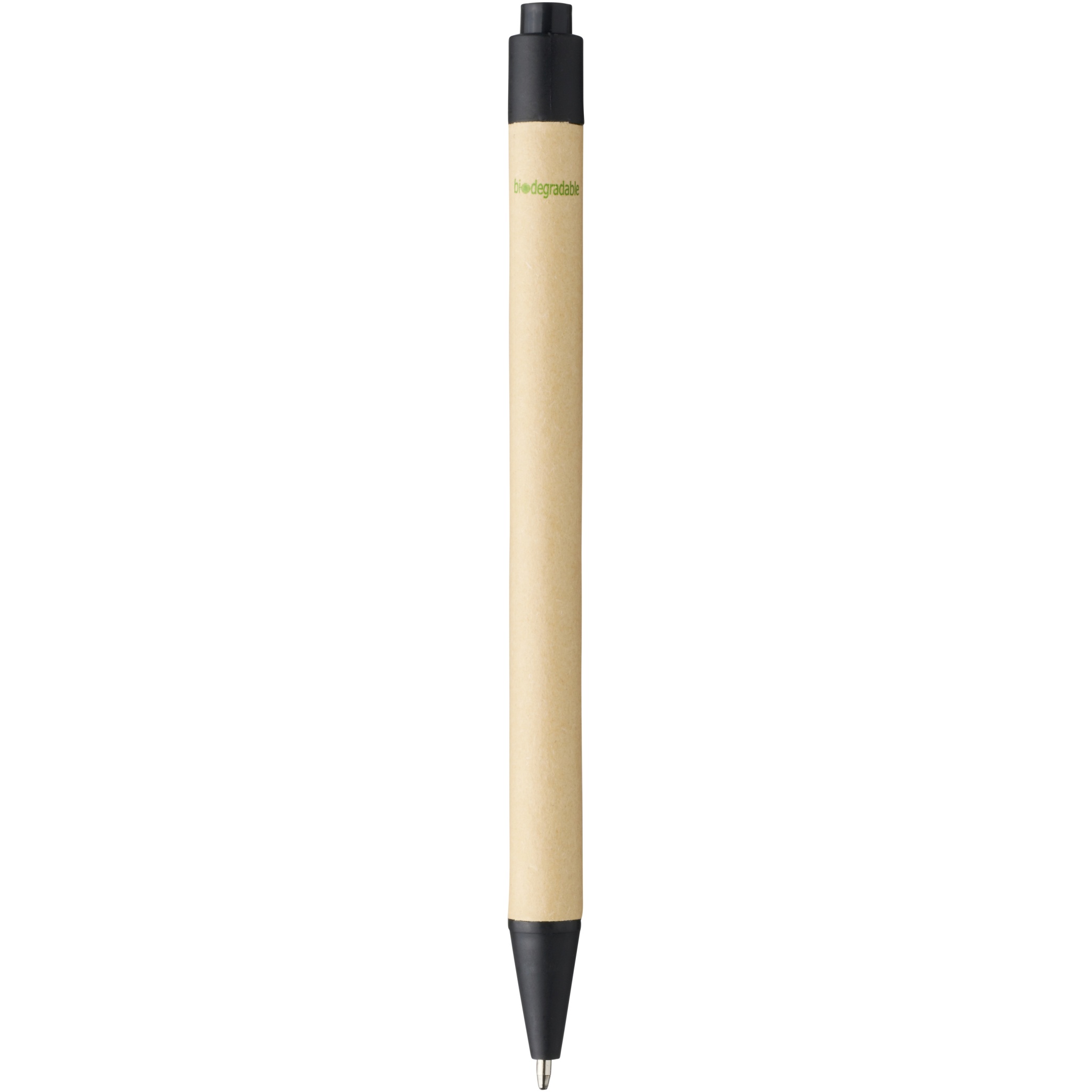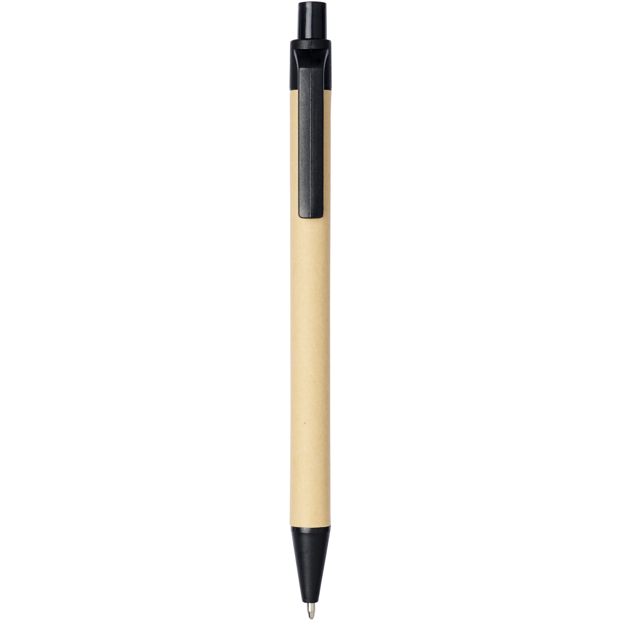 Berk-kuulakärkikynä, kierrätyspahvi ja maissimuovi