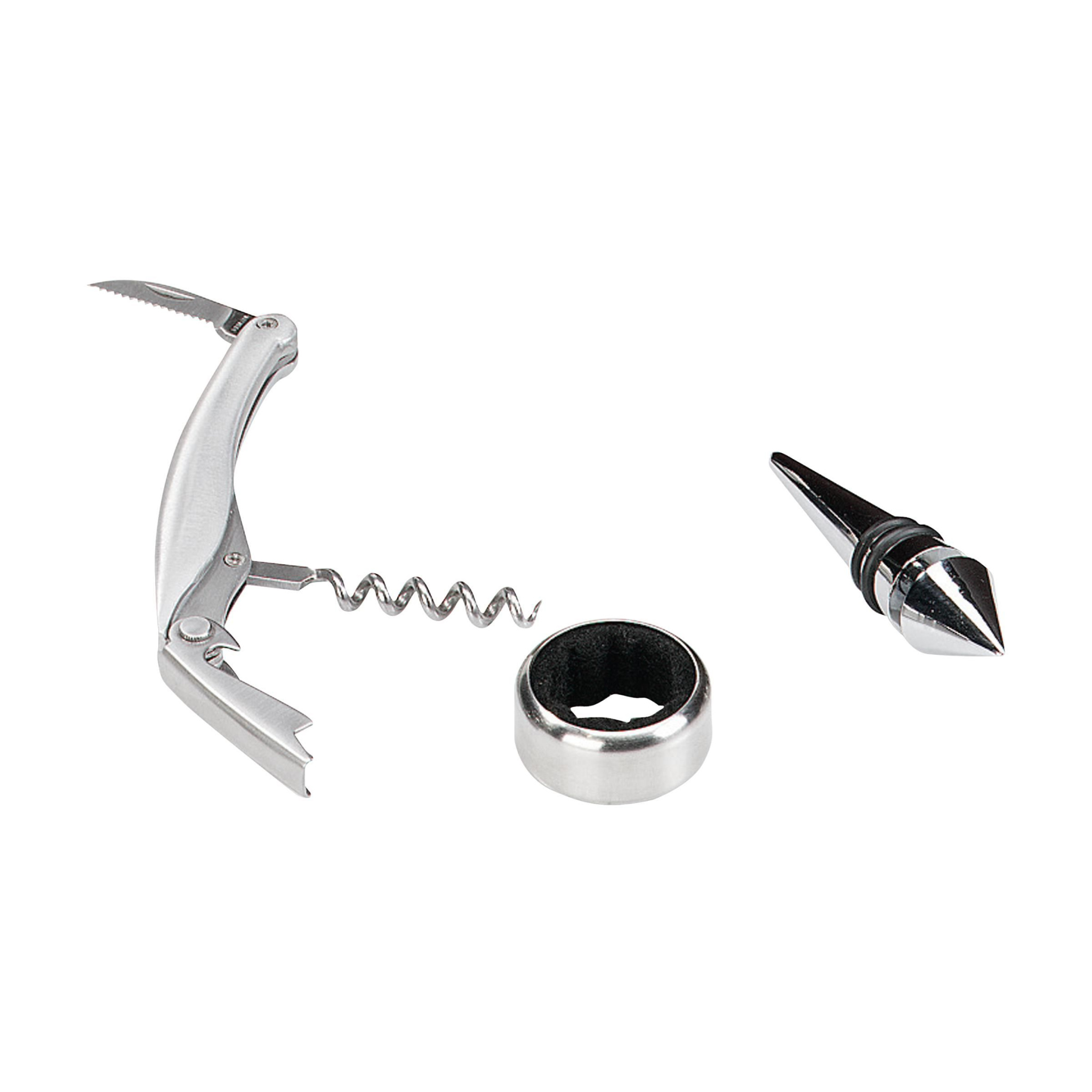 Tyylikäs puinen viinilaatikko, jossa tippakerääjä, pullonkorkki ja ruostumattomasta teräksestä valmistettu tarjoilijaystävä. Ei sisällä viiniä. Tuotteet toimitetaan settinä ruskeassa pahvilaatikossa.