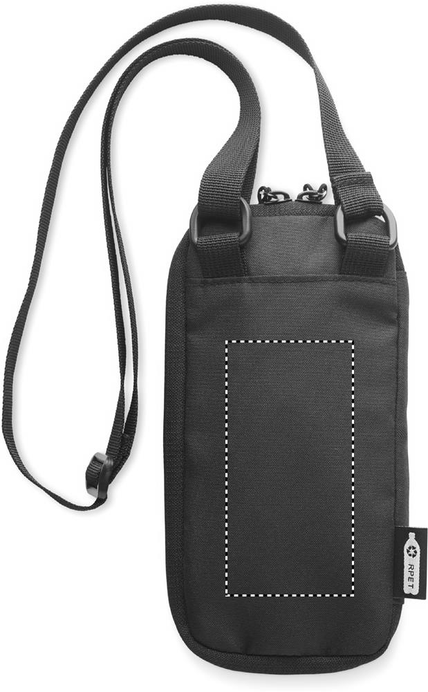 Yliolanlaukku puhelimelle 300D RPET polyesteristä, säädettävällä hihnall. Vetoketjullinen etu- ja sivutasku. sekä useita muita taskuja.