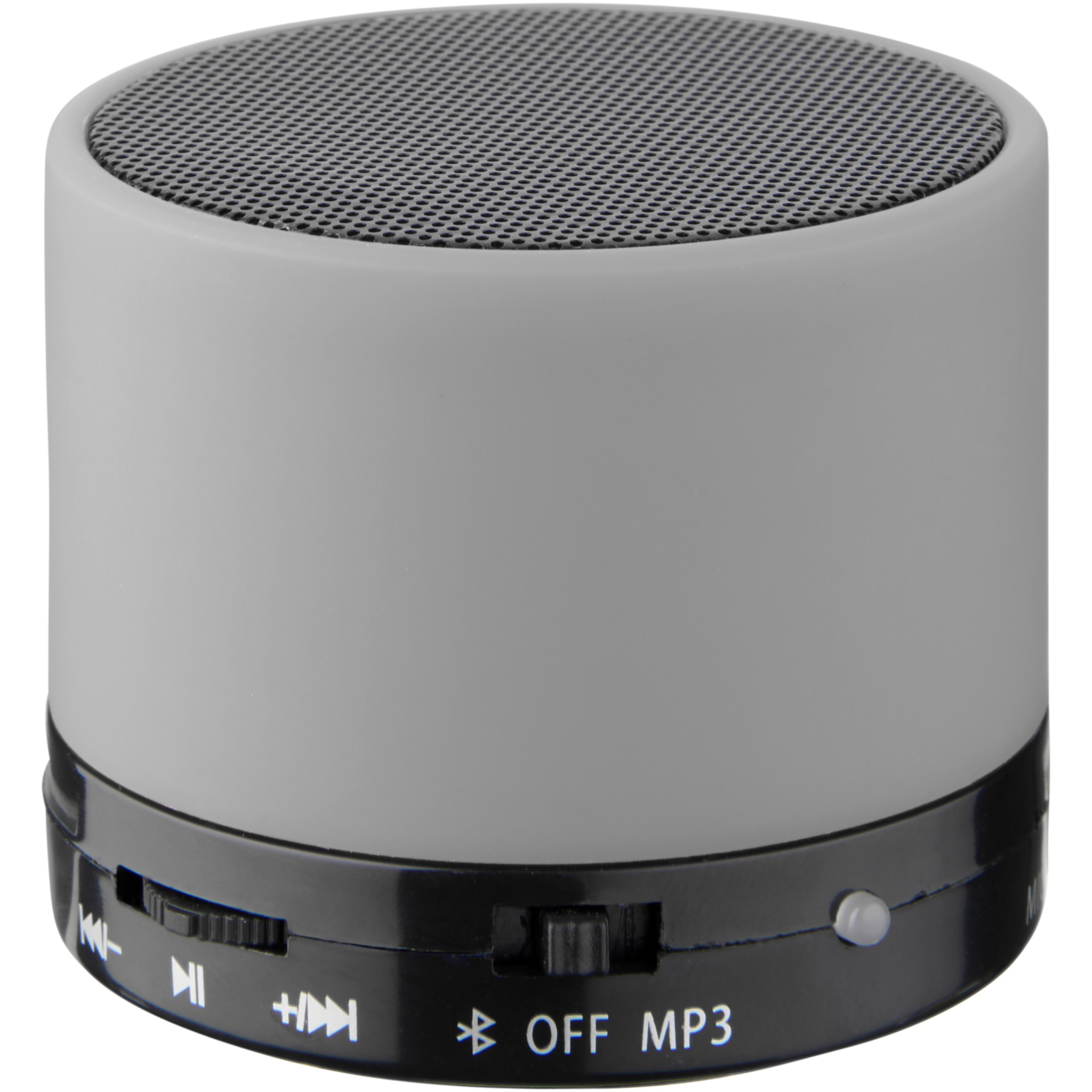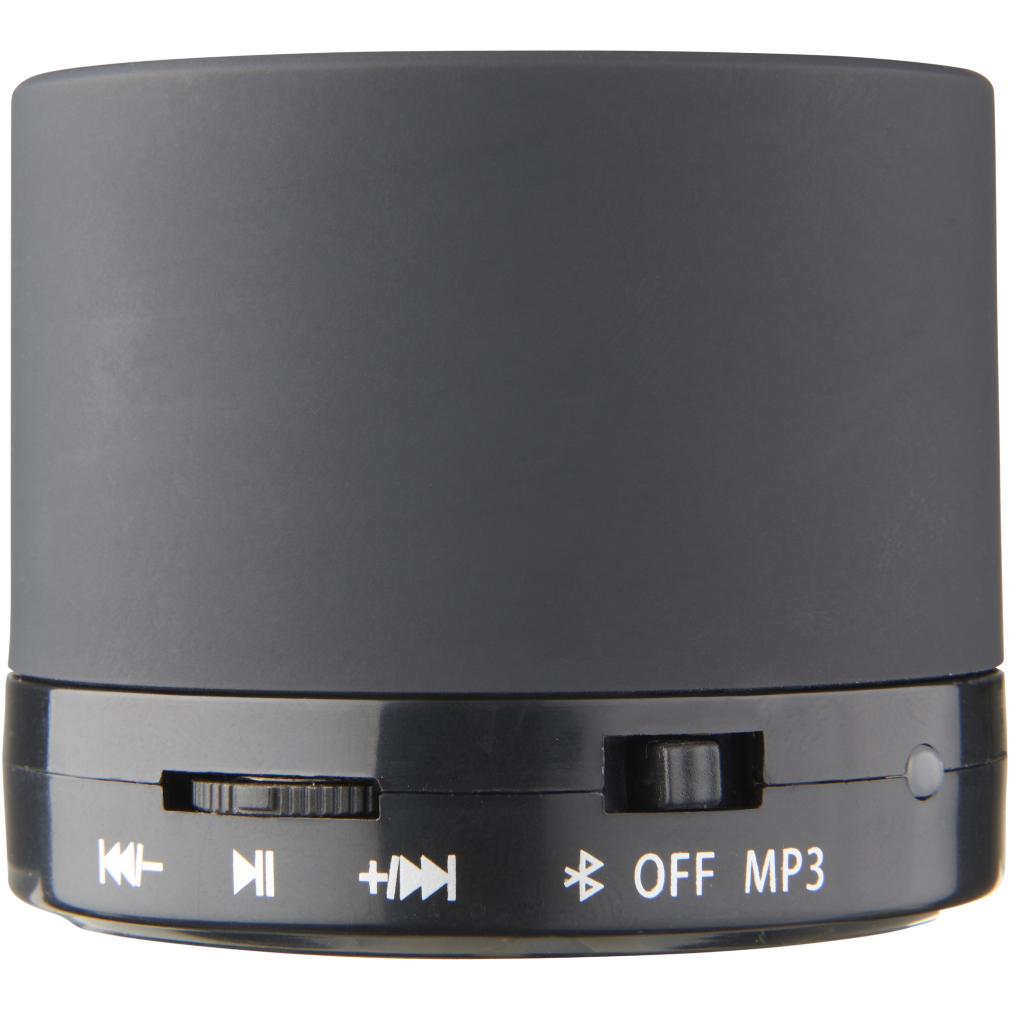 Kuminen sylinterikaiutin. Nauti musiikista ja elokuvista missä tahansa yhdistämällä Bluetooth® -yhteensopivaan laitteeseen, kuten iPhone-, iPad- tai Android OS-laitteeseen tämä kannettava Bluetooth®-kaiutin (10m säteellä). Sisäänrakennetulla mikrofonilla varustettu kaiutin mahdollistaa konferenssipuhelut älypuhelimesi kautta, tai videopuheluohjelmilla kuten Skypellä. Viimeistelty hienolla kumilla. USB-virtalähde mukana. .