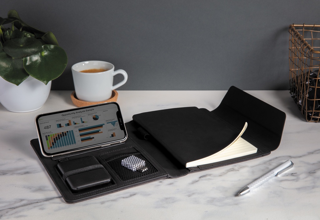 Logotrade liikelahja mainoslahja kuva: Fiko langaton latausportfolio A5 varavirtalähteellä