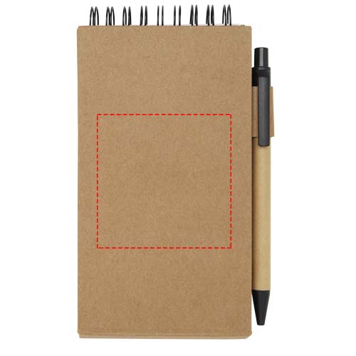 Tarralehtiö kuulakärkikynällä. Muistilehtiössä on 30 arkkia valkoista 70 g/m2 viivapaperia (8 x 12 cm). Siinä on myös 25 moniväristä (5 x 1,2 cm) ja 25 keltaista (7,5 x 7,5 cm) tarralappua. Paperi 70 g/m2. Kuulakärkikynän runko on valmistettu kierrätyspaperista. Musteen väri: Musta. Kirjoituspituus: 1000 metriä. Kärjen paksuus: 1,00 mm.