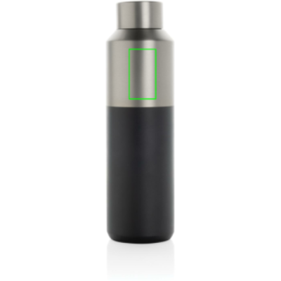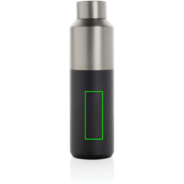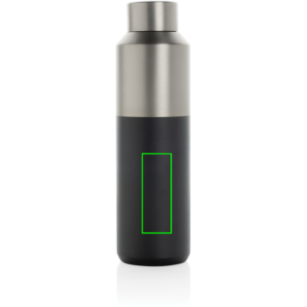 Tässä 600 ml:n vesipullossa on erottuva kaksivärinen ulkokuori, jossa on tyylikäs puolet ja puolet -muotoilu. Kaksiseinäinen kierrätetystä ruostumattomasta teräksestä valmistettu tyhjiörakenne pitää juomat jäähdytettyinä jopa 15 tuntia tai lämpiminä jopa 5 tuntia. Vesipullo sopii useimpiin tavallisiin auton kuppipidikkeisiin, joten se on täydellinen matkakäyttöön. Valmistettu RCS (Recycled Claim Standard) -sertifioiduista kierrätysmateriaaleista, mikä takaa täysin sertifioidun kierrätysmateriaalien toimitusketjun. BPA-vapaa. Sisältää FSC®-sertifioidun Kraft -lahjapakkauksen. Kierrätetty kokonaissisältö: 95 % tuotteen kokonaispainosta.