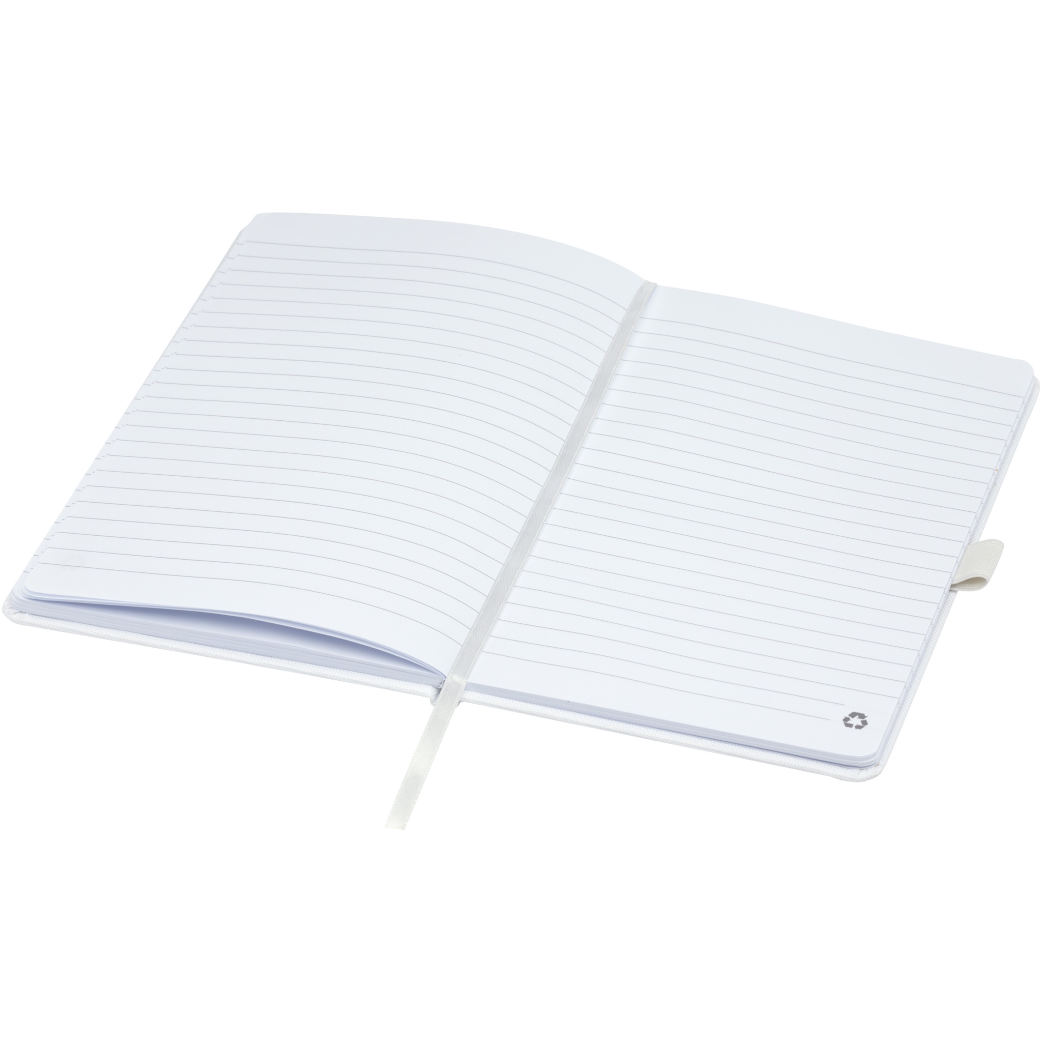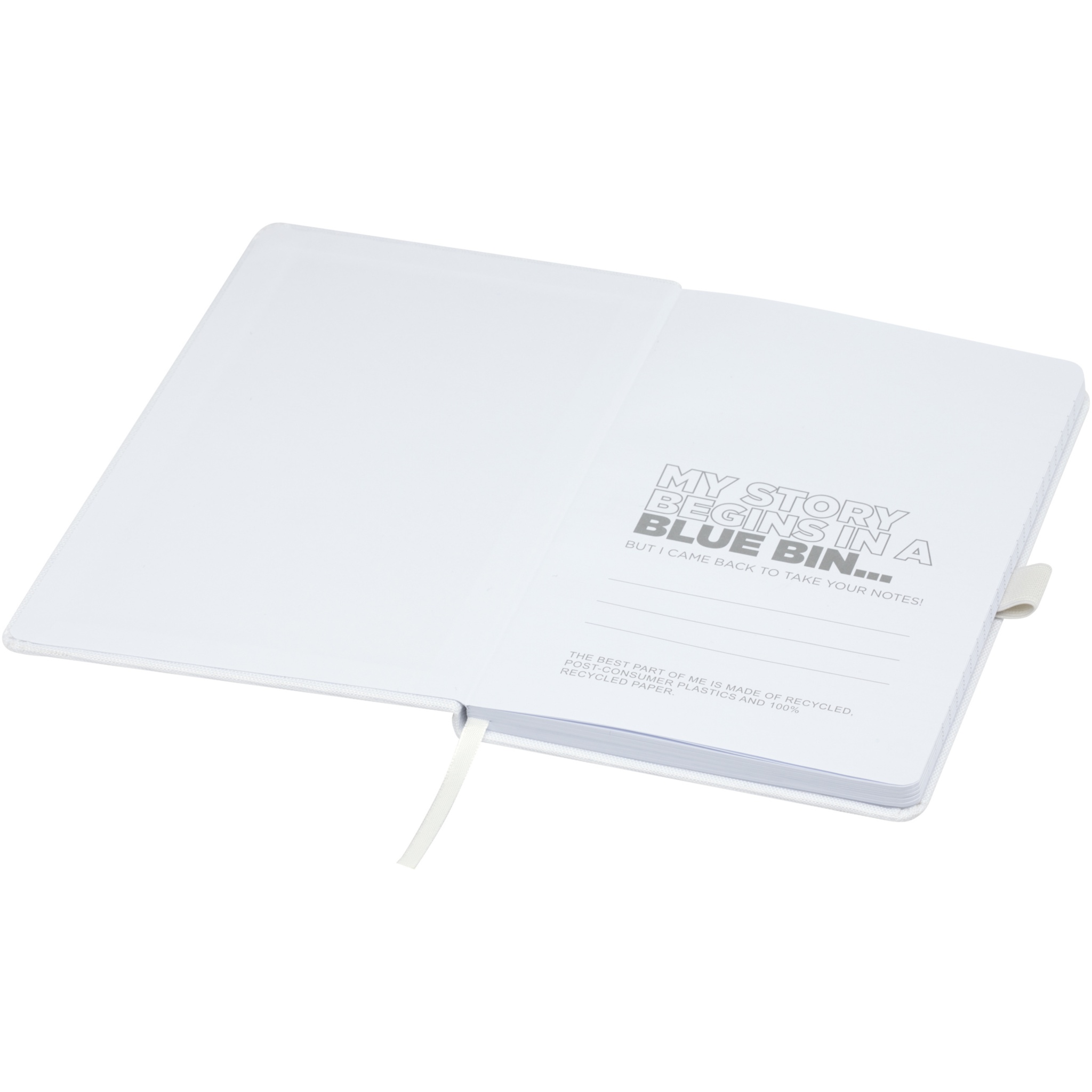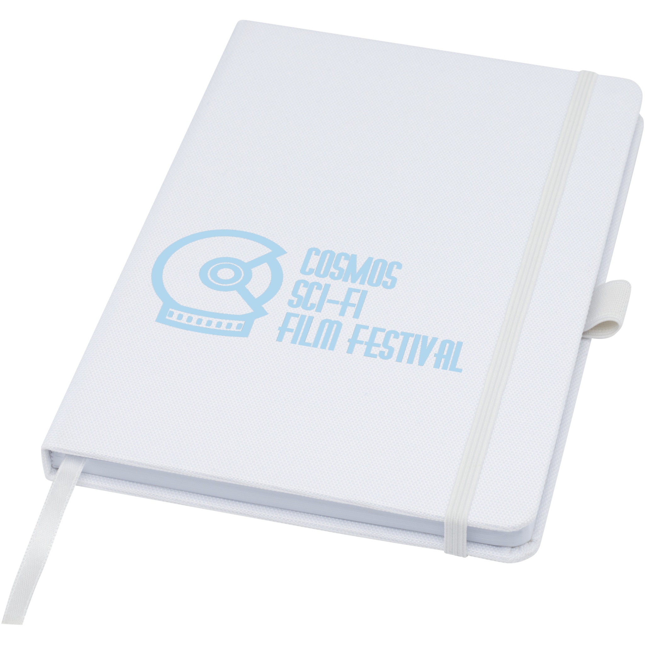 A5-kokoinen muistikirja, jonka kansi on valmistettu RPET-materiaalistq. Sisältää 80 arkkia 70 g/m² kierrätyspaperia valmiilla viivoilla, kynänpidikkeellä ja nauhamerkillä. Voidaan yhdistää 107757 Honua RPET -kuulakärkikynän kanssa.