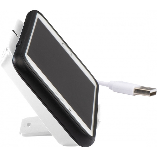 Muovinen induktiolaturi, lataa älypuhelimesi langattomalla tekniikalla. Langaton laturi toimii myös älypuhelimesi jalustana. Painamme logosi etupuolelle.
