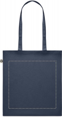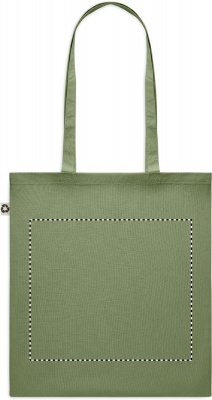 140 gr/m² kierrätetystä puuvillasta valmistettu kassi (65 % kierrätettyä puuvillaa, 35 % tavallista puuvillaa), pitkillä kahvoilla.