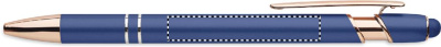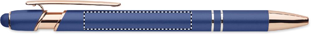Kierrätysalumiinista valmistettu styllus push ball -kynä ruusukultaisilla yksityiskohdilla. Sininen muste.