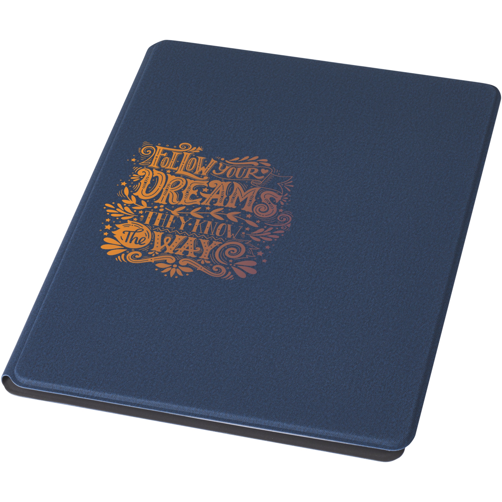 RCS-sertifioitu Kunveno-kansio on valmistettu osittain kierrätetystä polyesteristä, minkä ansiosta kansio on luontoystävällisempi valinta, koska se auttaa vähentämään uusiutumattoman ensiöraaka-aineen käyttöä. Mukana magneettisuljin ja 20 valkoista ympäristöystävällisistä materiaaleista valmistettua 80 g/m2-kierrätyspaperiarkkia.