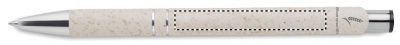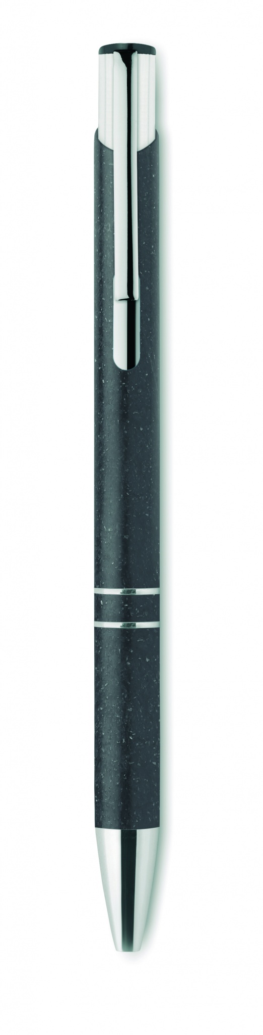 Kuulakärkikynä sinisellä musteella, 50% vehnän olkea ja 50% ABS-muovia hopeaisilla yksityiskohdilla.