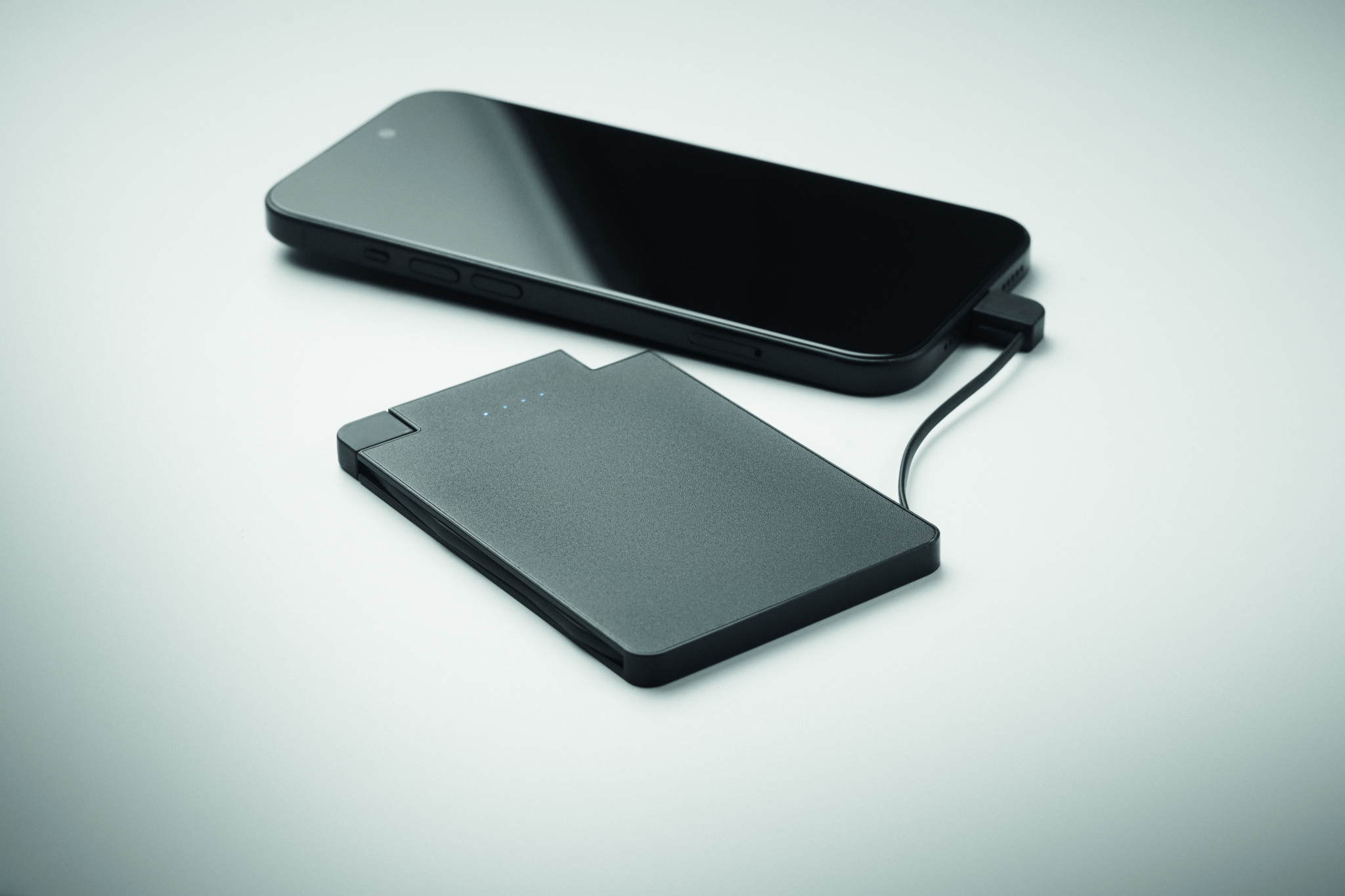 Korttikokoinen virtapankki 2500 mAh:n kapasiteetti ABS:ssä sisäänrakennetuilla kaapeleilla. Powerbank pysyy magneettisilla iOS-puhelimilla. Tulo: Type-C ja lähtö Type-C- ja IOS-laitteet.