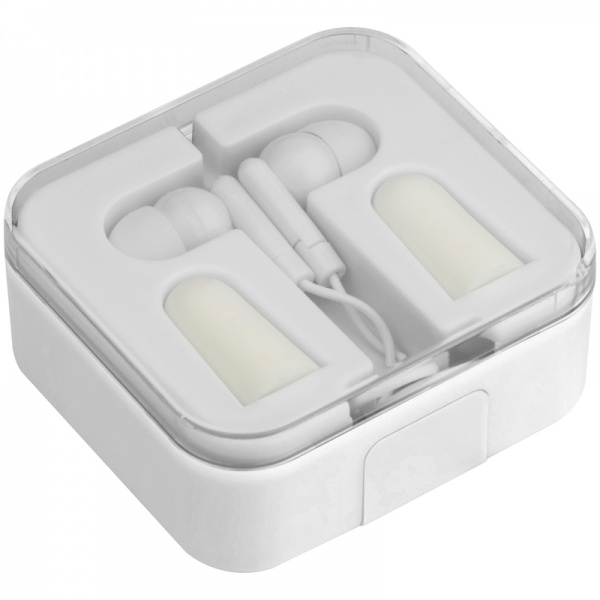 Toimintolaatikko, sisältää kuulokkeet ja korvatulpat. Painamme logosi laatikkoon.