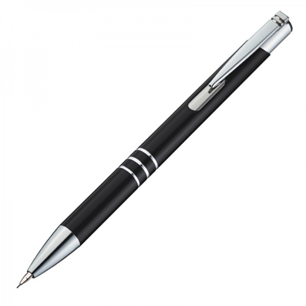 Alumiinista valmistettu kirjoitussetti, joka koostuu kuulakärkikynästä, jossa on sininen kirjoitus suuri täyttöpakkaus ja mekaaninen lyijykynä, jokaisessa koristerenkaat. Logosi kaiverretaan leikkeen oikealle puolelle.