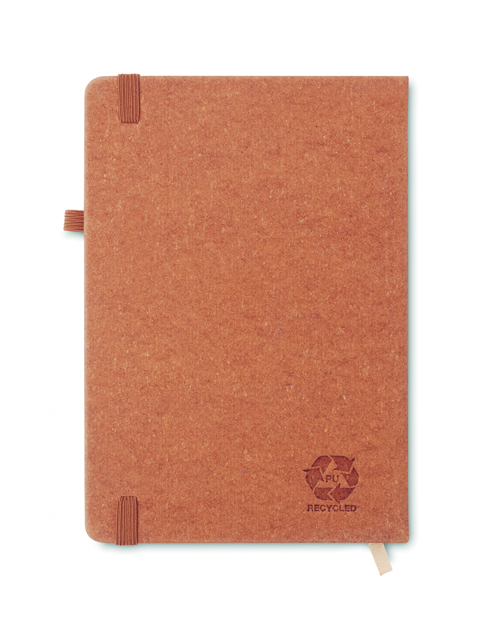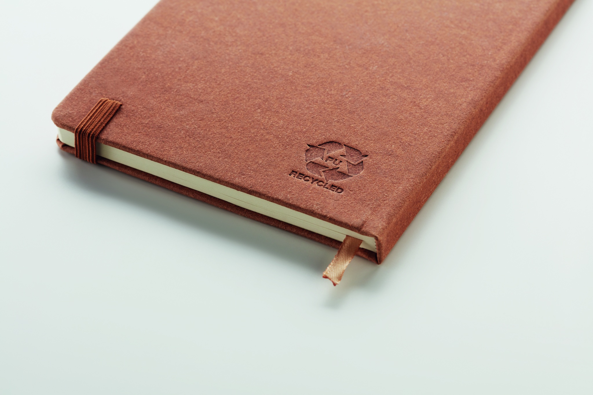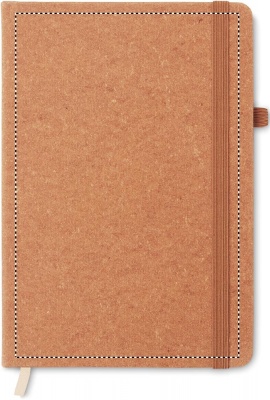 A5 muistikirja kierrätetyllä PU kannella, 160 viivattua sivua (80 arkkia) elastinen kuminauha, kynänsilmukka ja kirjanmerkki.