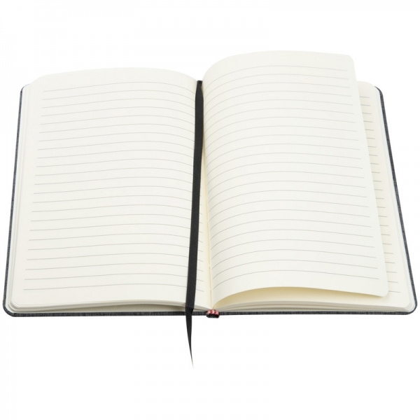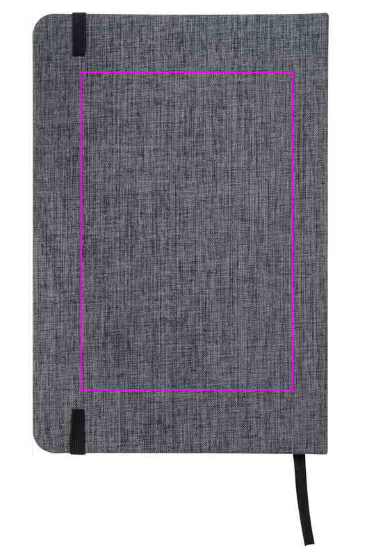 A5-muistikirja, jossa on tyylikäs 300D-kanvas polyesterikansi, musta kumisuljin ja kirjanmerkki. 160 riviä sivua. Painamme logosi kanteen.
