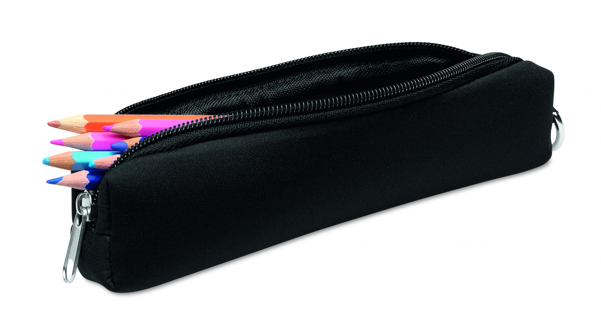 Vaahtomuovista valmistettu penaali, sisältää karabiinikoukun.