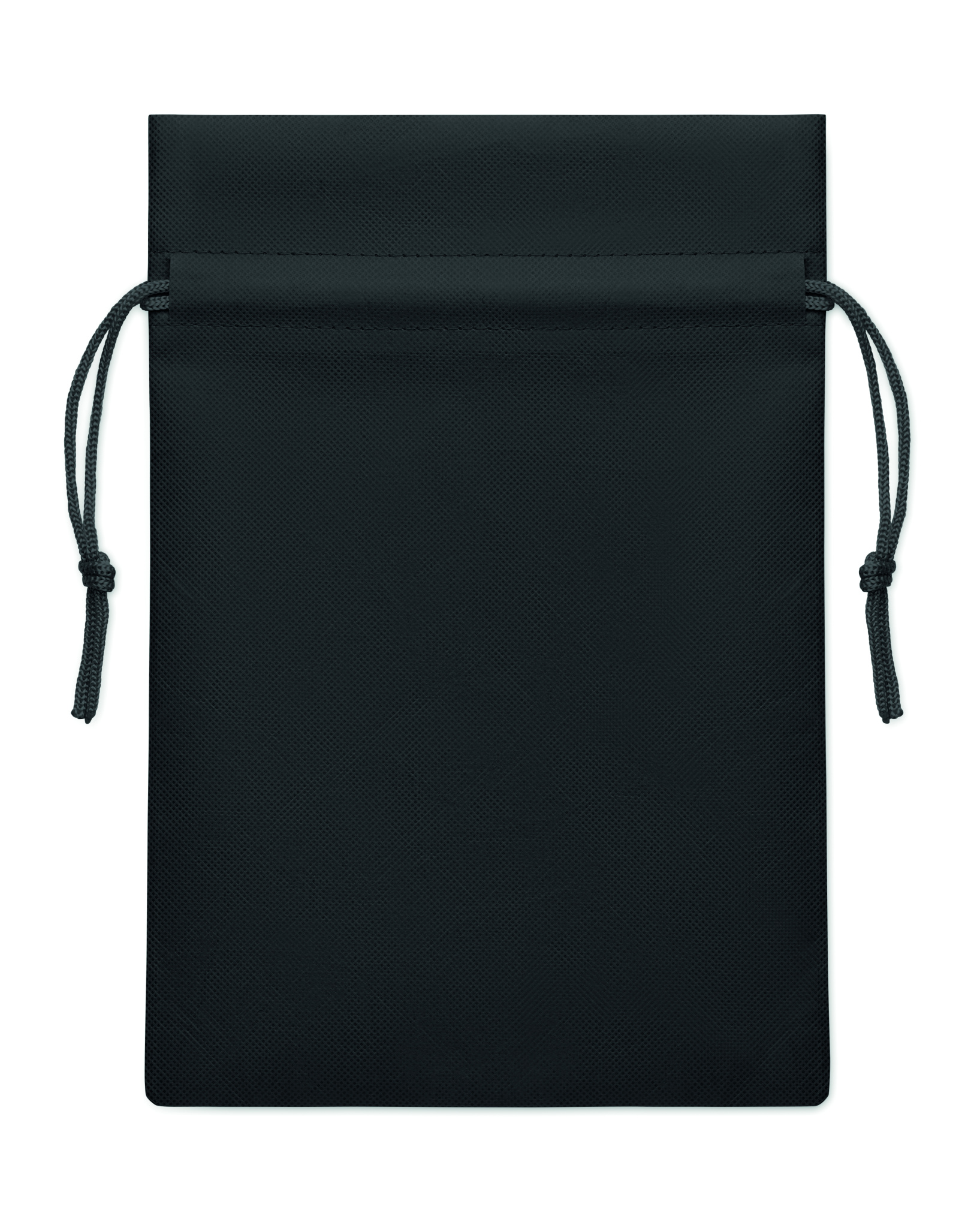 Pieni lahjakassi kiristysnyörillä RPET-kuitukankaasta, 80 g/m². Koko noin 20 x 30 cm.