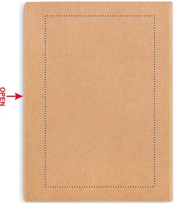 Lasten piirustussetti, jossa 60 arkkia paperia, viisi värikynää, teroitin ja pyyhekumi.
