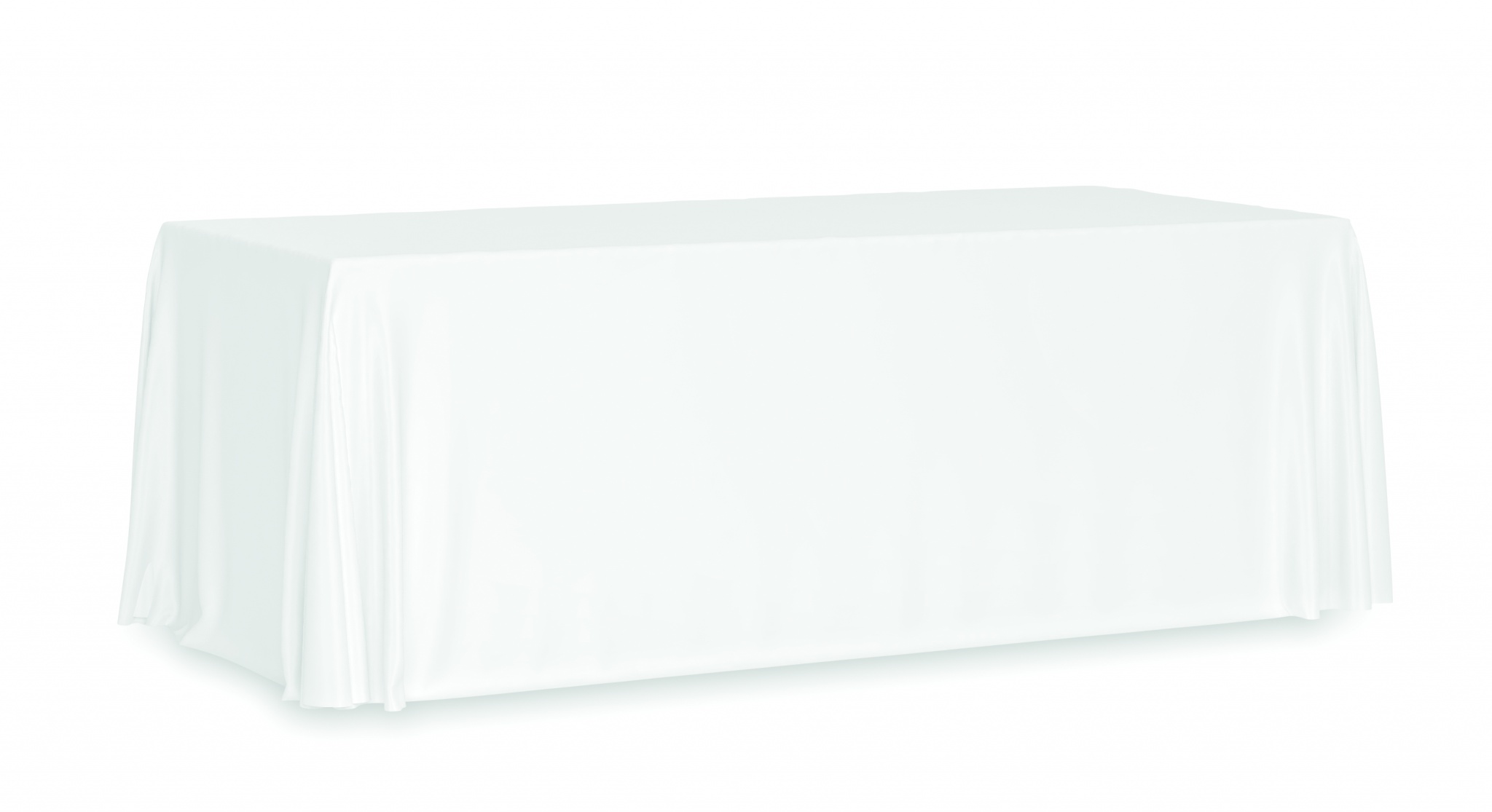 Suuri suorakulmainen pöytäliina 180 gr/m² polyesteriä. Pöytäliina yrityksen esittelyyn, messuille, näyttelyihin, konferensseihin, markkinointitapahtumiin, juhliin tai juhliin. Koko: 280x210 cm.