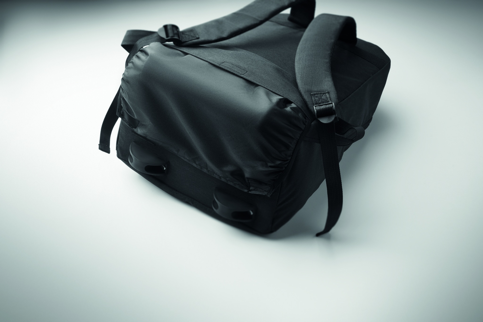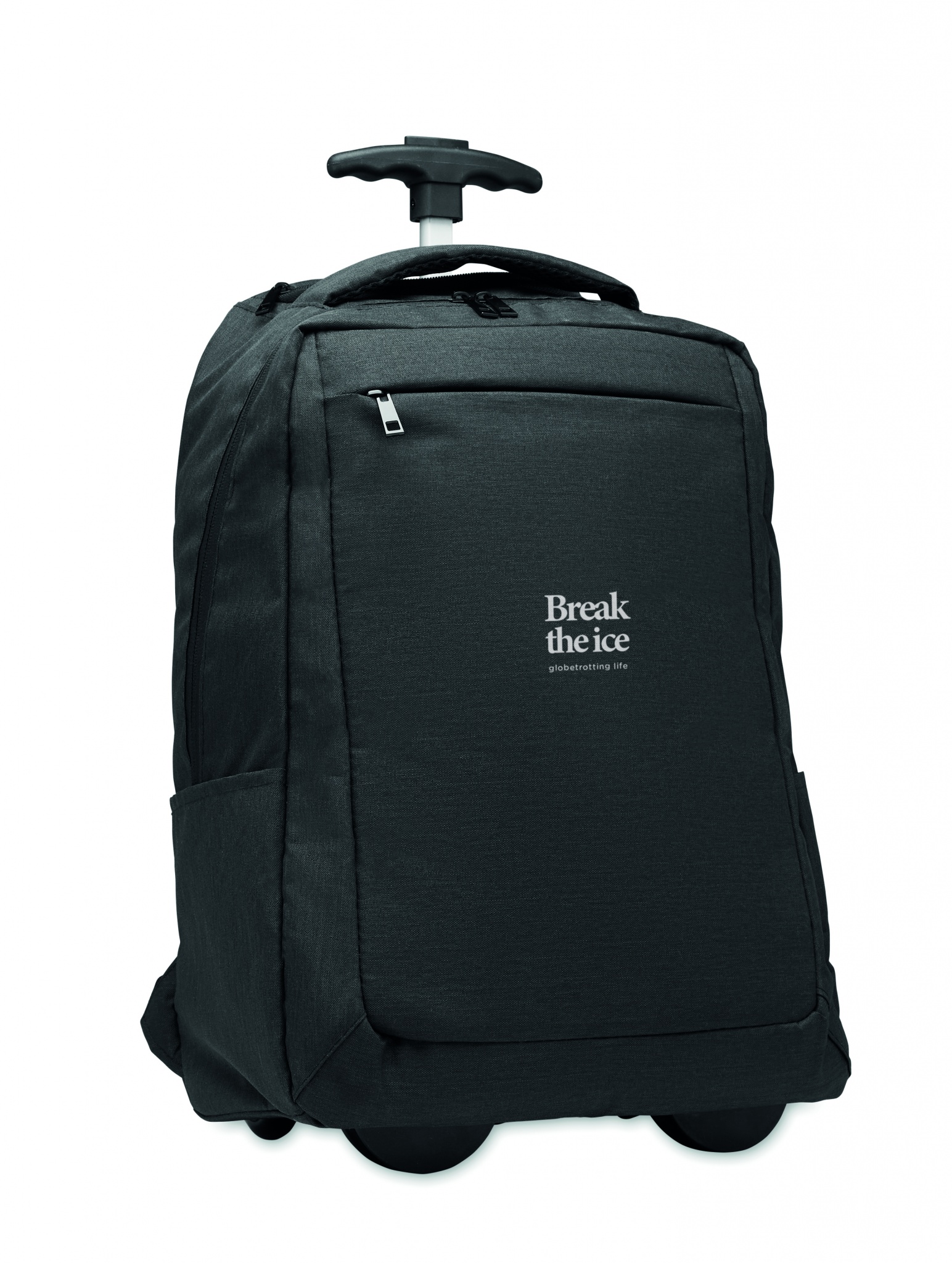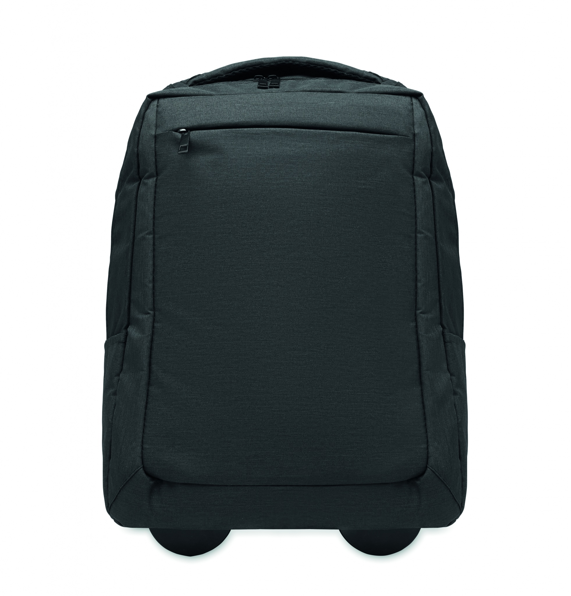 Pyörillä varustettu kannettava reppu 600D RPET-polyesteriä. Sisältää lokeron 15 tuuman kannettavalle tietokoneelle. Vetoketjullinen etutasku. Kaksi sivutaskua. Kolme sisäistä liukutaskua. Pehmustetut selkä- ja olkahihnat. 2 pyörää ja kaksinkertainen putkirunko.
