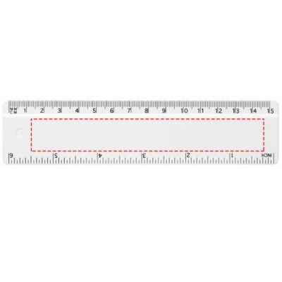 Tukeva kierrätysmuovinen viivain, johon on merkitty tuumat ja senttimetrit.