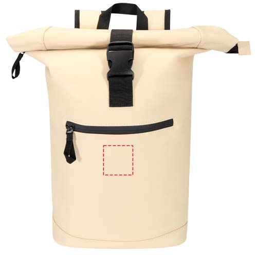 Ensiluokkaisesta kierrätetystä PU-nahasta valmistettu rullattava reppu väriin sopivalla RPET-vuorella yhdistää modernin tyylin kestävään käyttöön. Sen vedenkestävä viimeistely pitää tärkeät tavarasi suojassa, ja rullattava suljin tarjoaa joustavaa säilytystilaa. Se onkin täydellinen työ- ja vapaa-ajan matkoille tai kuntosalille. Sisällä on pehmustettu lokero, johon mahtuu jopa 15,6 tuuman kannettava tietokone, sekä vetoketjullinen tasku, jossa voit pitää laitteesi ja päivittäiset tavarat järjestyksessä. Ulkopuolella oleva vetoketjullinen etutasku vedenpitävällä vetoketjulla tarjoaa turvallisen pääsyn tavaroihin, ja pehmustetut, säädettävät olkahihnat ja hengittävä selkäpaneeli takaavat mukavuuden koko päiväksi.